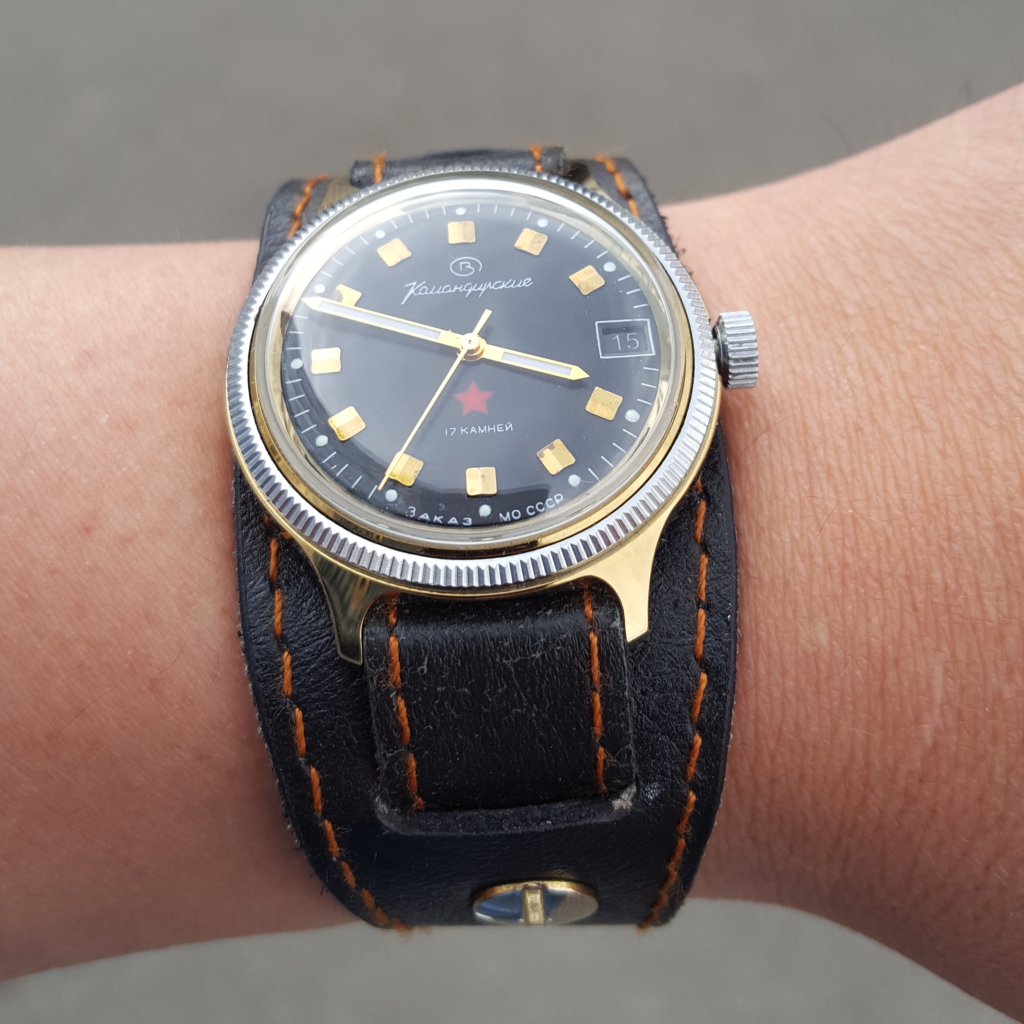Одна рабоче-пролетарская - был блЯстючий рекламный цифер и потасканный корпус, вторая нарядно-выходная - из Партнеров, которые умудрились сохранить идеальный циферблат. Ремешки пришли случайно: со строчкой приехал из Еката от remeshok66.ru, второй от развалившихся женских часов с алиэкспресса. Испытываю к ним очень теплые чувства, потому что первая пара часов, у которых собственноручно перекидывал мехи/циферы/стрелки. Но вот в Амфибиях постоянно что-то подкрутить хочется, а эти, как получились, так и существуют уже почти два года. |