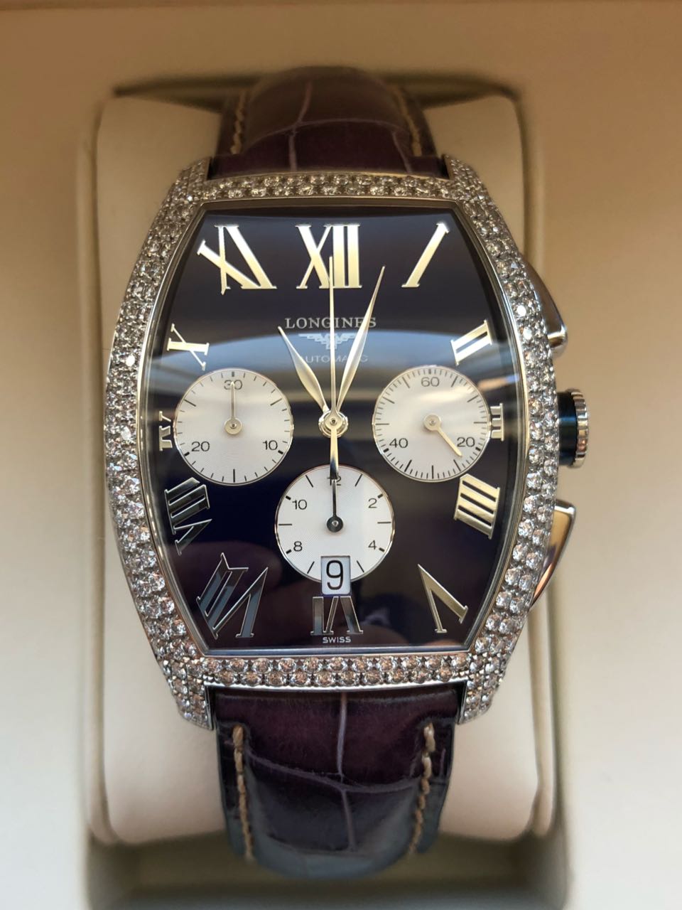 РОСКОШЬ без границ. ВОСХИТИТЕЛЬНЫЙ хронограф LONGINES. 3.12 карат!!! 200 брилиантов. Синий. Идеал.