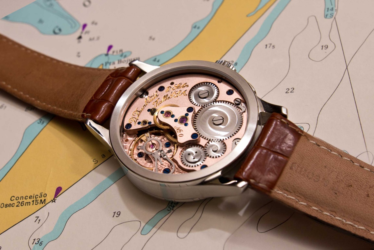 Вложение 2231084 WELTZEIT KLASSIK - модель с центральными часовой, минутной и секундной стрелками (локальное время) и малым 24-х часовым циферблатом с часовой стрелкой в положении "6ч." (домашнее время). Вложение 2231076 Механизм WELTZEIT KLASSIK Вложение 2231078 WELTZEIT AUF & AB и -WELTZEIT REGULATOR модели с наличием указателя запаса хода в положении "12ч" и малым 24-х часовым циферблатом с часовой стрелкой в положении "6ч." (домашнее время). WELTZEIT AUF & AB Вложение 2231079 WELTZEIT REGULATOR Вложение 2231080 Как видно, обе модели имеют центральные часовую, минутную и секундную стрелки и наличие надписи REGULATOR на циферблате одной из моделей может вызвать недоумение. Как объяснил Дирк это отсылка к механизму механизма REGULATOR на базе которого созданы модели WELTZEIT. Функционально модели одинаковые, отличие между ними в дизайне циферблата и расположении надписей. Вложение 2231081 Установка локального времени у всех моделей производится нажатием кнопки в положении "2ч" при этом центральная часовая стрелка прыгает на один час вперед. Вложение 2231082 Одна из ранних версий, можно увидеть различия в дизайне циферблатов. Вложение 2231083 Все механизмы имеют винтовой баланс с регулировочными винтами и тонкой регулировкой "лебединая шея", гравированный мост баланса, золотые шатоны, термически синеные винты, заводные колеса с "солнечной шлифовкой", 3/4-я платина и накладной мост центральной секундной стрелки с зернистой поверхностью (grained). На данный момент у меня нет подробных технических характеристик часов, поэтому пока ограничусь кратким описанием. Дирк Дорнблют планирует представить эту модель в рамках мирового турне, первая презентация намечена в июне в Австралии. Следующей после Австралии будет Россия, приезд в Москву планируется в конце сентября. И немного личного:) Очень рад, что у Дирка появились модели с функцией мирового времени, тем более, что сам немного причастен к этому событию. |