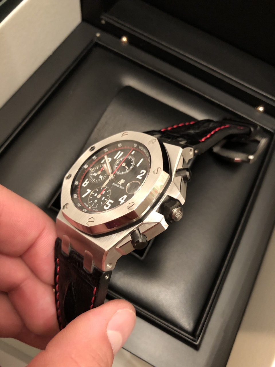 Пол: мужские Год покупки: 2017 БУ часы, состояние: AA (отличное) http://forum.watch.ru/images/market-question.png Полировка: нет Цена: 17 500 USD (продажа) Коробка: есть Документы: есть Продам актуальную модель Audemars Piguet Royal Oak Offshore Chronograph, диаметр 42 мм. REFERENCE: 26470ST.OO.A101CR.01 КОРПУС: Нержавеющая сталь ДИАМЕТР: 42 мм ВЫСОТА КОРПУСА: 14,22 мм СТЕКЛО: Сапфировое ЗАДНЯЯ КРЫШКА: Сапфировое стекло РЕМЕШОК: Кожа аллигатора с пряжкой из нержавеющей стали ВОДОНЕПРОНИЦАЕМОСТЬ: До 100 м Часы приобретались новыми на форуме в 2017 году. В документах год продажи указан 2017. Носились редко, потому и продаю. Часы в прекрасном состоянии. Полный комплект всех коробок и документов. Часы находятся в г. Курск. Отправлю в любой город по предоплате курьерской компанией за ваш счёт. Возможен небольшой торг. Вложение 2255489Вложение 2255490Вложение 2255491Вложение 2255492Вложение 2255493Вложение 2255494Вложение 2255495Вложение 2255496Вложение 2255497Вложение 2255498Вложение 2255499 |