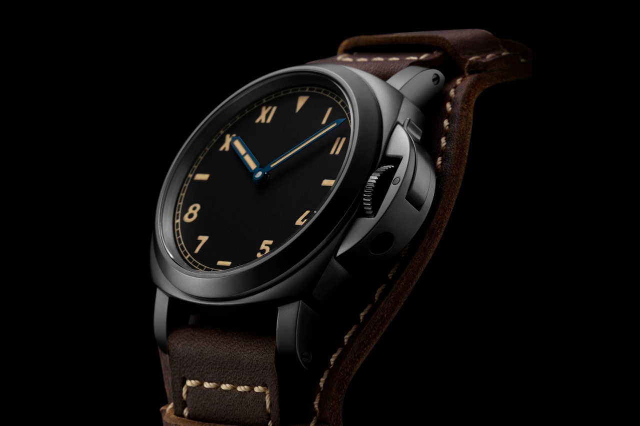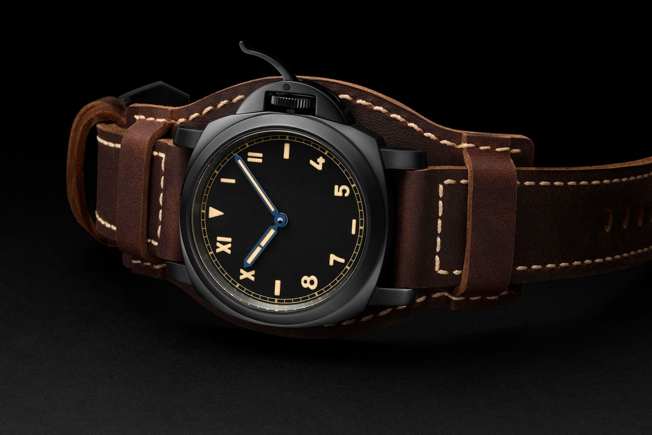 Изюминка этой модели заключается в двух деталях (обе с военным прошлым). Первая – циферблат в стиле California, который можно увидеть на самых ранних экземплярах военных моделей Panerai. Ретро-образ часов подчеркивает люминофор винтажного оттенка. Вторая деталь – типичный для военных моделей кожаный ремешок с манжетой, который владелец часов может по желанию заменить на каучуковый ремешок, идущий в комплекте.