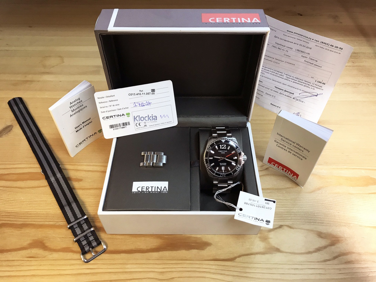 Пол: мужские Год покупки: 2014 БУ часы, состояние: AA (отличное) http://forum.watch.ru/images/market-question.png Полировка: нет Цена: 15 500 руб. (продажа) Коробка: есть Документы: есть Мужские кварцевые швейцарские часы Certina DS Action Diver Часы в отличном состоянии. Недавно заменил батарейку в официальном сервисном центре. В комплекте: фирменная коробка Certina со всеми книжечками, дополнительные звенья для браслета, тканевый браслет Nato. Механизм — кварцевый Водонепроницаемость — WR200 (погружение под воду с аквалангом) Стекло — сапфировое Размер — 41 мм Особенности — индикация низкого уровня заряда батареи, технология повышения защиты от проникновения влаги, специальное устойчивое к вибрации и ударам крепление механизма, завинчивающаяся заводная головка, однонаправленный безель на 120 щелчков, браслет с литыми звеньями и литой застежкой. Отличные дайверские часы со строгим дизайном. Будут смотреться уместно как с классическим костюмом, так и с шортами на пляже. Вложение 2312480 Вложение 2312481 Вложение 2312482 Вложение 2312483 Вложение 2312484 Вложение 2312485 Вложение 2312486 Вложение 2312487 Вложение 2312488 |