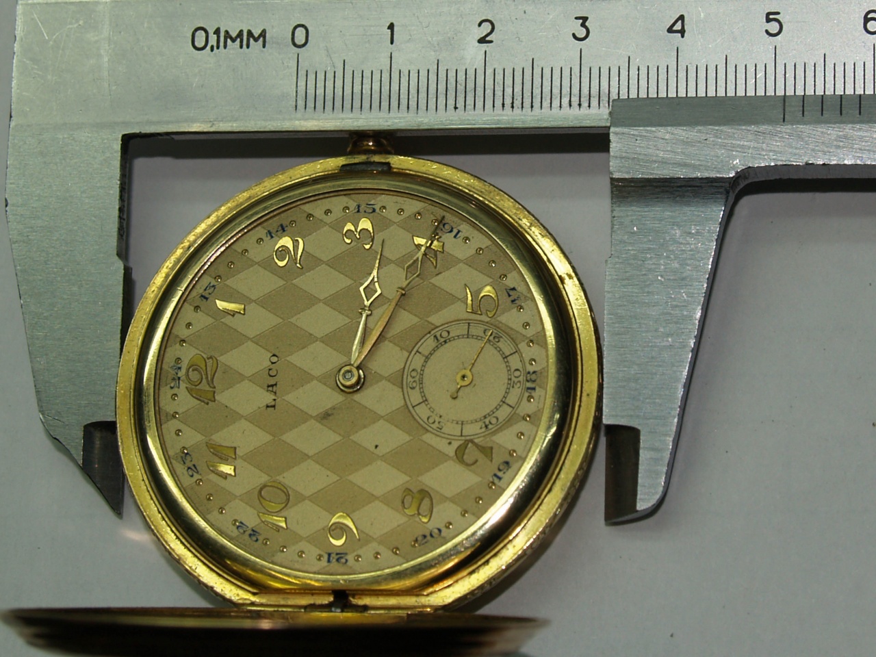 Позолоченный карманник второй половины 20-х - начала 30-х. Производства Lacher & Co, Pforzheim, Германия. Корпус арт-деко, характерный для 20-х годов. Использован швейцарский базовый механизм, что объяснимо еще и тем, что Laco до 1933 своих не выпускали, старались использовать Swiss. От 75$. Но из-за достаточно эффектной "внешности" - для подарка болше дадут.