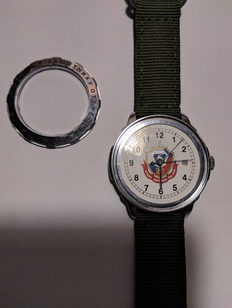 Слава 2414. Стекло с крышкой просто должны одеваться на корпус. Возможно, надеваются туго и нужен будет пресс.