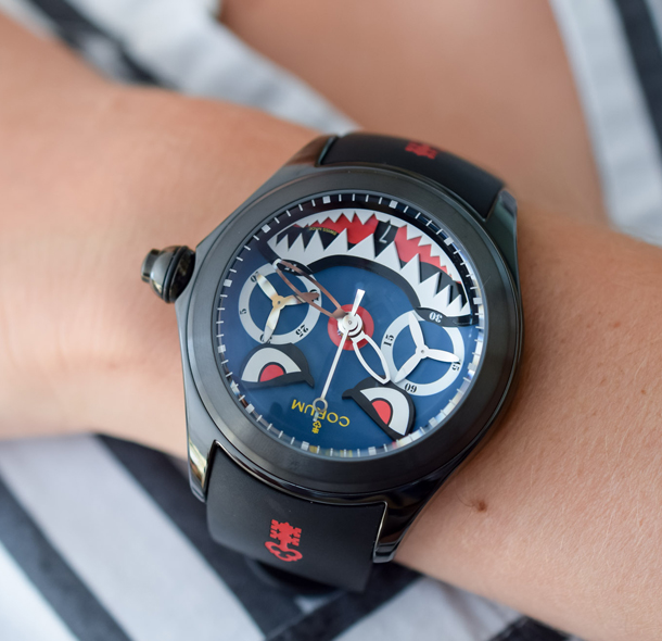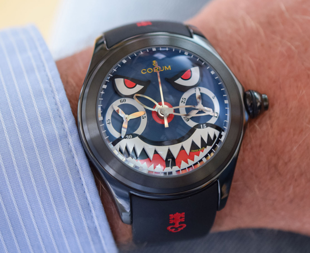 Corum Bubble – это крупные часы с нестандартным дизайном, обладающим впечатляющим крупным куполом из сапфирового стекла. Коллекция Bubble появилась в 2000 году. После нескольких лет отсутствия, круглые часы вновь вернулись на Baselworld 2015 и с тех пор завоевали внимание эксцентричных поклонников бренда. Одной из ярких моделей является Corum Bubble Shark Mono-Pusher Chronograph.