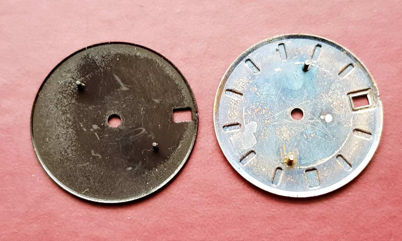 Вот такой Вложение 2401210 Ну цифер, как цифер,правда немного залапанный грязненькими ручонками предыдущих владельцев-:mad: много таких видел- бывают под ЗГ на 2 часа тоже, и у самого есть- и такой, и с цветным градиентом внизу. Знал, кому подарю, когда приведу в порядок. Приходит посылка, начинаю разбирать- нужно же привести в порядок- в корпус родной поставить( в бочке же стоит, что не характерно), механизм посмотреть и т.д. Снимаю крышку- первый сюрприз- мех внутри 2214, а не 2414. Думаю, ну все, ноги у цифера отломаны, сам на скотче- клее. Печаль.:( А нет. И винтики в платине закручены, и ноги на месте, и не перепаяны. И с обратной стороны- это родной настоящий цифер на 2214 Вложение 2401211 Рядом с 2414 Вложение 2401212 То, что цифер не артель- не вызывает сомнения. То, что напечатан на ЧЧЗ и там же нанесен люм- вот не сомневаюсь вообще. До этого немного скептически относился к таким вещам- бывает брак. что-то не знаем- например, у меня есть министерка с надписью- 17 камней и амфибия восьмигранка с надписью- 18 камней, но -это или ошибка, или брак, но все правильно"по ногам" и т.д. А вот увидев это- подумал- а ведь и правда , может , так от скуки и "для себя" в обеденный перерыв кто-то брал и печатал? не именно такое, а разное- что хотелось , что нравилось. А мы вот тут потом спорим- раритет, редкость, было, не было и т.д?:) З.Ы. Часы все равно облагорожу, пусть будет внутри, как и родное- 2214:):):):) |