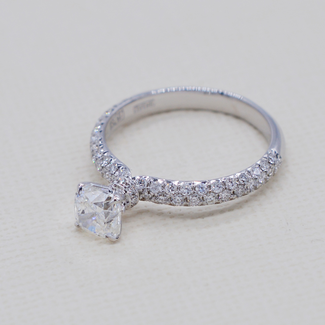 Ослепительное кольцо из белого золота инкрустированное чистейшими бриллиантами – это изящный способ намекнуть о своих чувствах или выразить свою любовь без лишних слов.