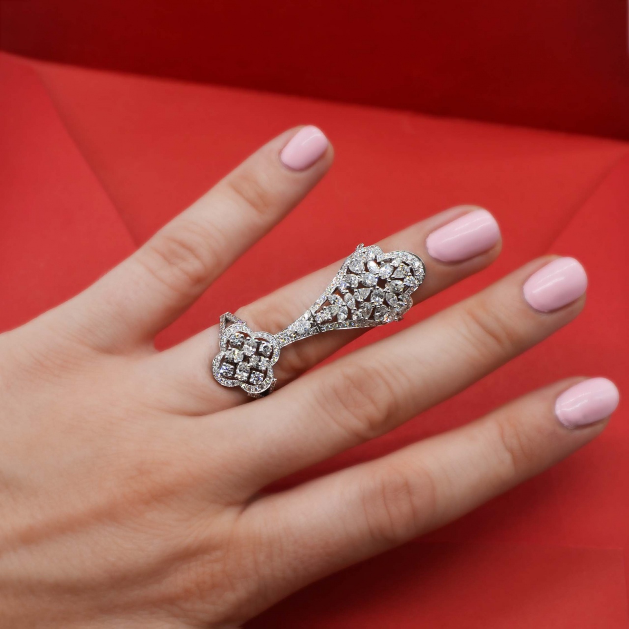 Кольцо надевается на весь палец - на среднюю и нижнюю фалангу. Палец сохраняет полную подвижность. Очень изящно смотрится на пальце. Кольцо яркое, коктейльное, едва ли подойдёт для повседневной носки. Изделие выполнено в эксклюзивном варианте, в белом золоте 750 пробы Вес изделия 9.30 гр Бриллиантов качества 2/3 - 3/3 3.11 карат Где круглых rd57 - 136шт на 1.27 карат И фантазийных: Маркизы, Груши, Овалы на 1.84 карат Изделие высочайшего качества. Посмотреть и примерить данное кольцо вы можете в уютном офисе, расположенном в центре Москвы По вашему желанию возможна проверка изделия в геммологическом центре, который находится в этом же здании, либо в любом другом месте на ваше усмотрение. Доставка изделия осуществляется по всему Миру! С удовольствием отвечу и проконсультирую вас по всем интересующим вопросам. Цена 4890 $ Вложение 2448631 Вложение 2448632 Вложение 2448634 Вложение 2448635 Вложение 2448637 |