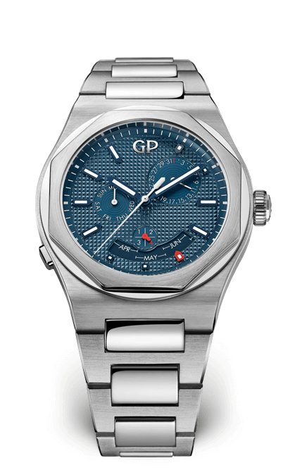 По-прежнему популярная коллекция Laureato пересматривает классические каноны часового искусства, оставаясь верна современному дизайну в стиле «спортивный шик». Под стать такому непревзойденному усложнению, каким является вечный календарь, бренд Girard-Perregaux разработал модель Laureato, представляющую собой совокупность ассиметричных деталей, находящихся в динамическом равновесии. Оснащенные специально созданным уникальным автоматическим механизмом, часы Laureato Perpetual Calendar восхищают не только стилем, но и комфортом использования. Удобство считывания показаний и легкость регулировки стали результатом заботы дизайнеров об эргономике модели и ее утилитарности.