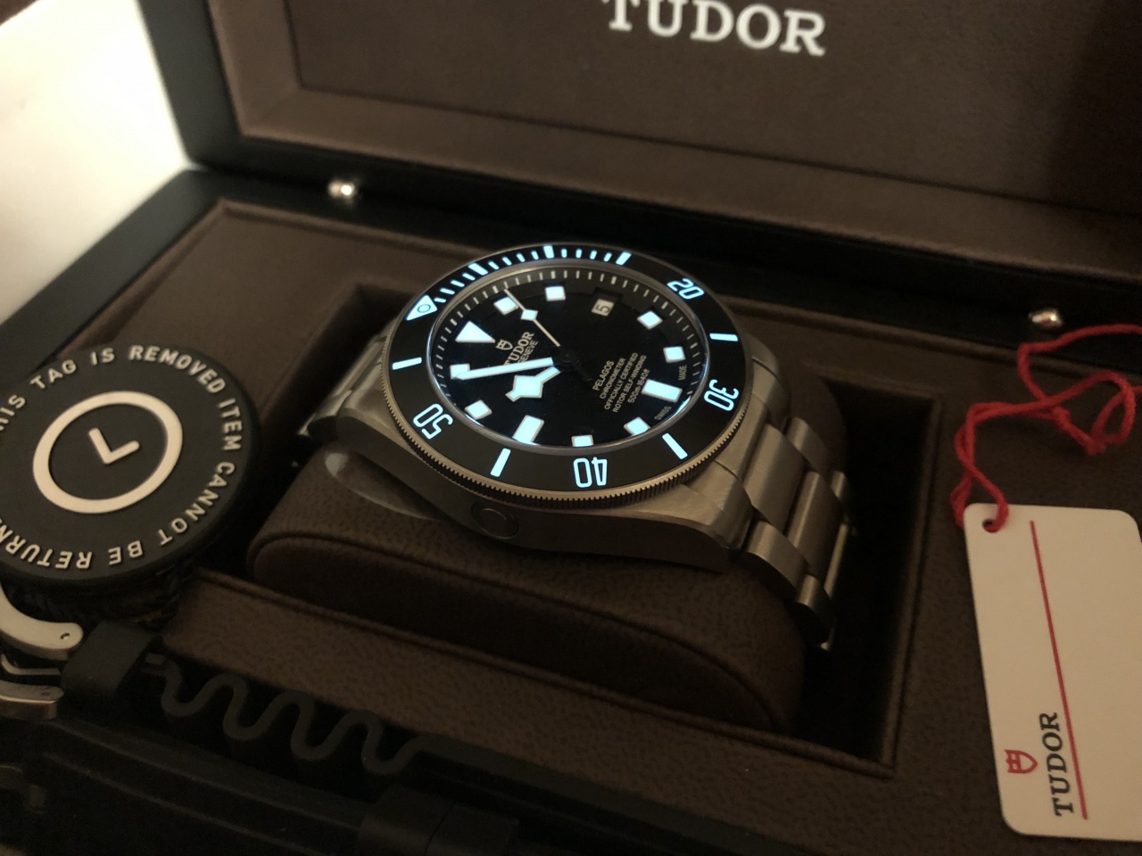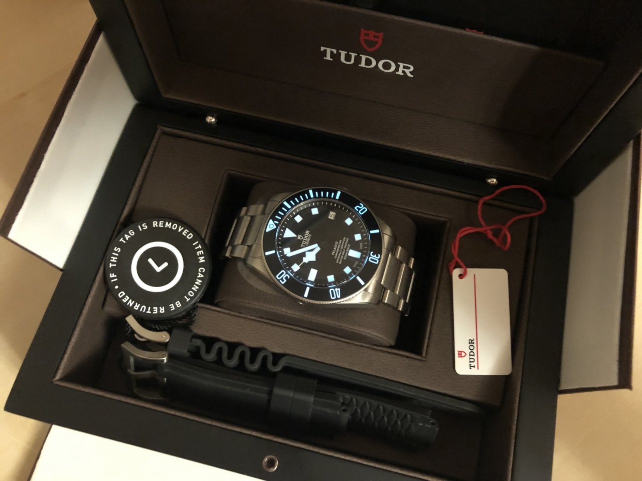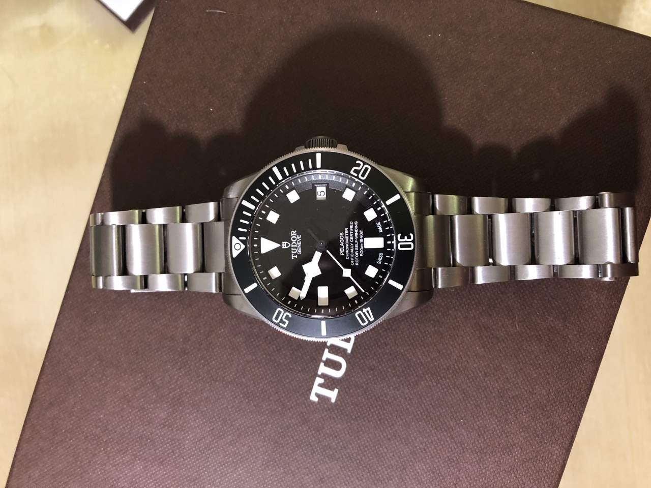 Пол: мужские Год покупки: 2017 БУ часы, состояние: AA (отличное) http://forum.watch.ru/images/market-question.png Полировка: да, делалась Цена: 2 800 USD (продажа) Коробка: есть Документы: есть Легендарный Tudor Pelagos, водозащита 500м! Удобнейший браслет с пружинками, керамические шарики, качество ROLEX. Часы носились редко! Ход отличный! Часы не полировались! ТОЛЬКО БРАСЛЕТ! ЛЮМ НЕРЕАЛЬНЫЙ! COSC ХРОНОМЕТР! Запас хода 70 часов. Фантастический, лучший в мире ход безеля! Вложение 2471092 Вложение 2471093 Вложение 2471094 Вложение 2471095 Вложение 2471096 Вложение 2471097 Вложение 2471098 https://cdn2.jomashop.com/media/cata...600tn-0001.jpg https://www.jomashop.com/tudor-watch...tnl-bksti.html Размеры корпуса: 42 x 14 мм Материал: Титан Влагозащита: 500м Функции: часы, минуты, секунды, дата Калибр: Tudor Calibre MT5612 Стекло: Сапфир 3мм! Циферблат: черный , люминесцентные метки Retail : 4.400$ https://www.jomashop.com/tudor-watch-25500tn-bkti.html https://www.jomashop.com/tudor-watch-25600tn-bkti.html - страница модели БУ Пелагос на Джуме - 3000$ + налоги + доставка https://www.jomashop.com/preowned-1-...00tb-blti.html Цена СУПЕР только Москва |