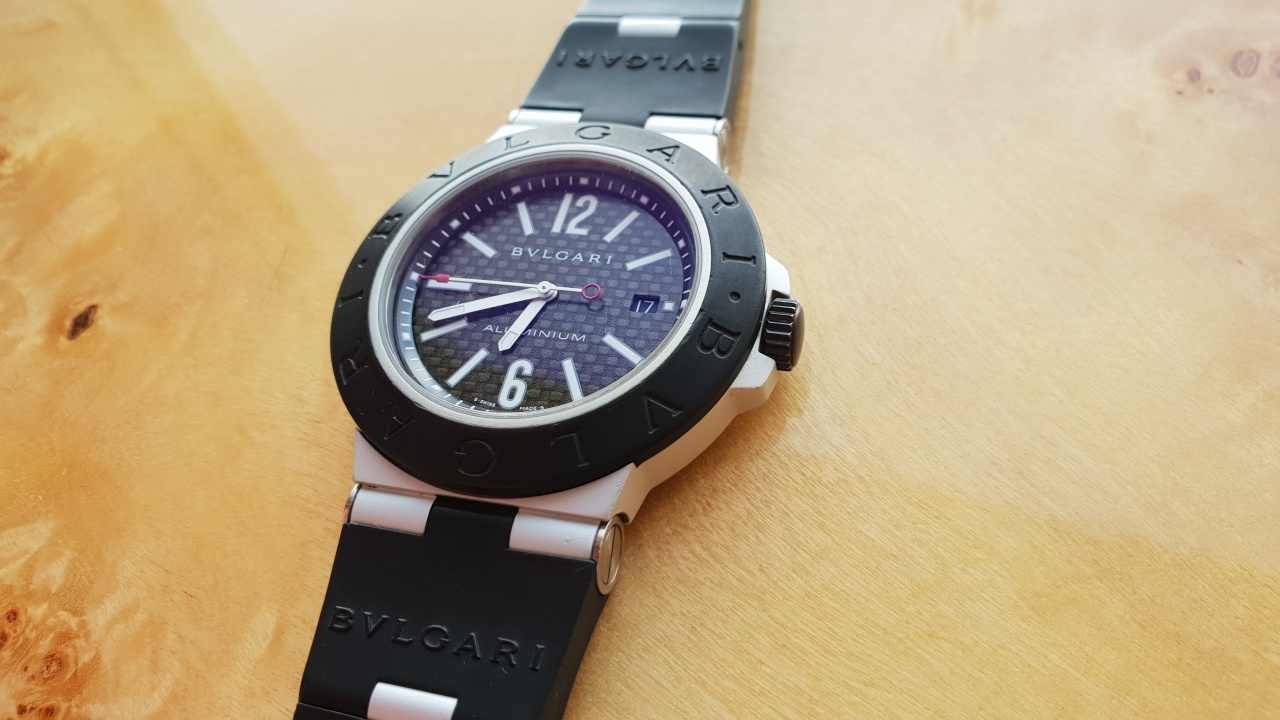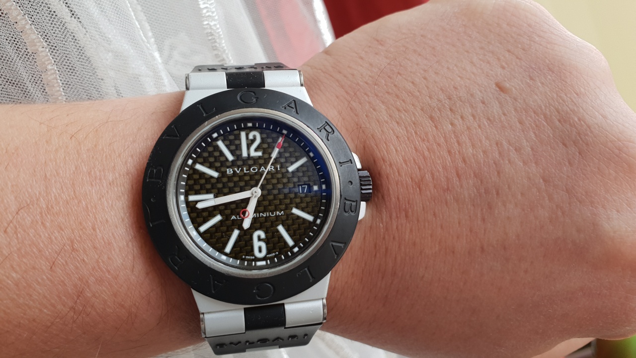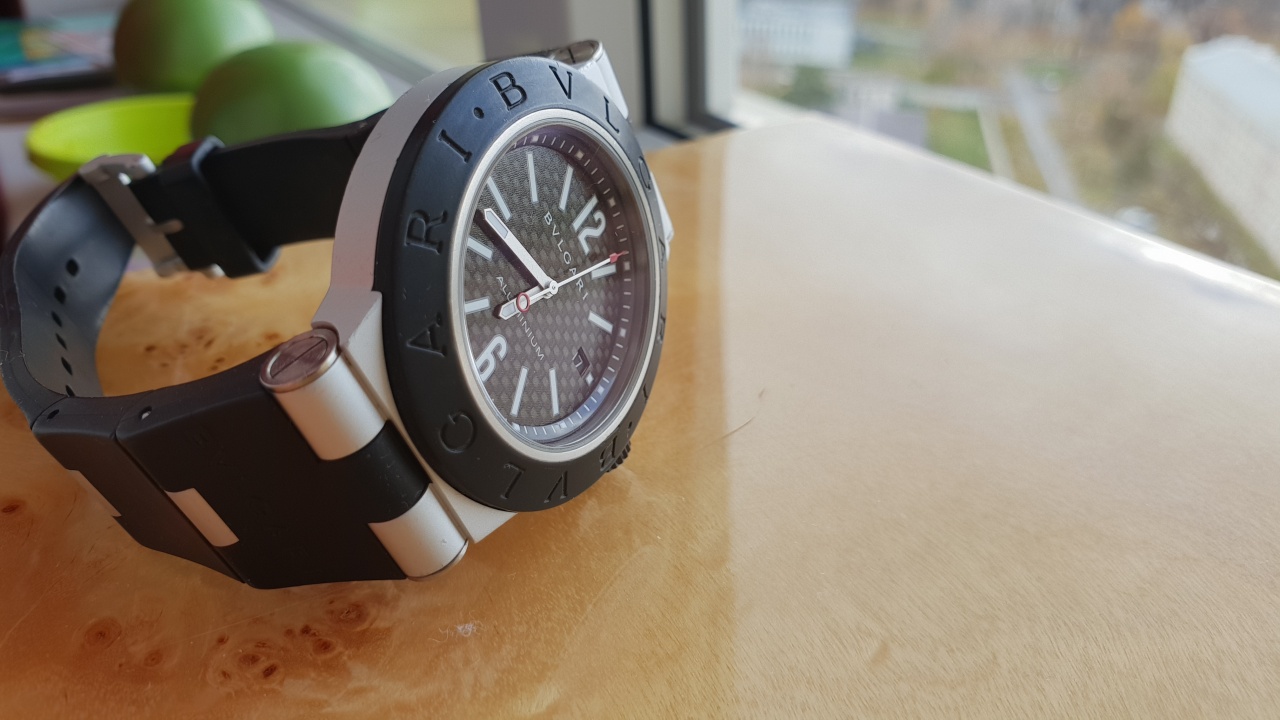 BVLGARI DIAGONO ALUMINIUM 44мм - брутальный, пафосный, с циферблатом "КАРБОН" и по СУПЕРЦЕНЕ