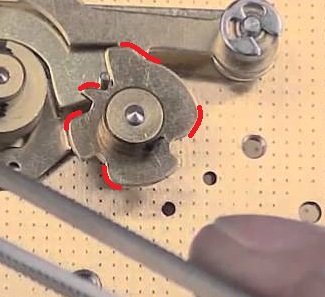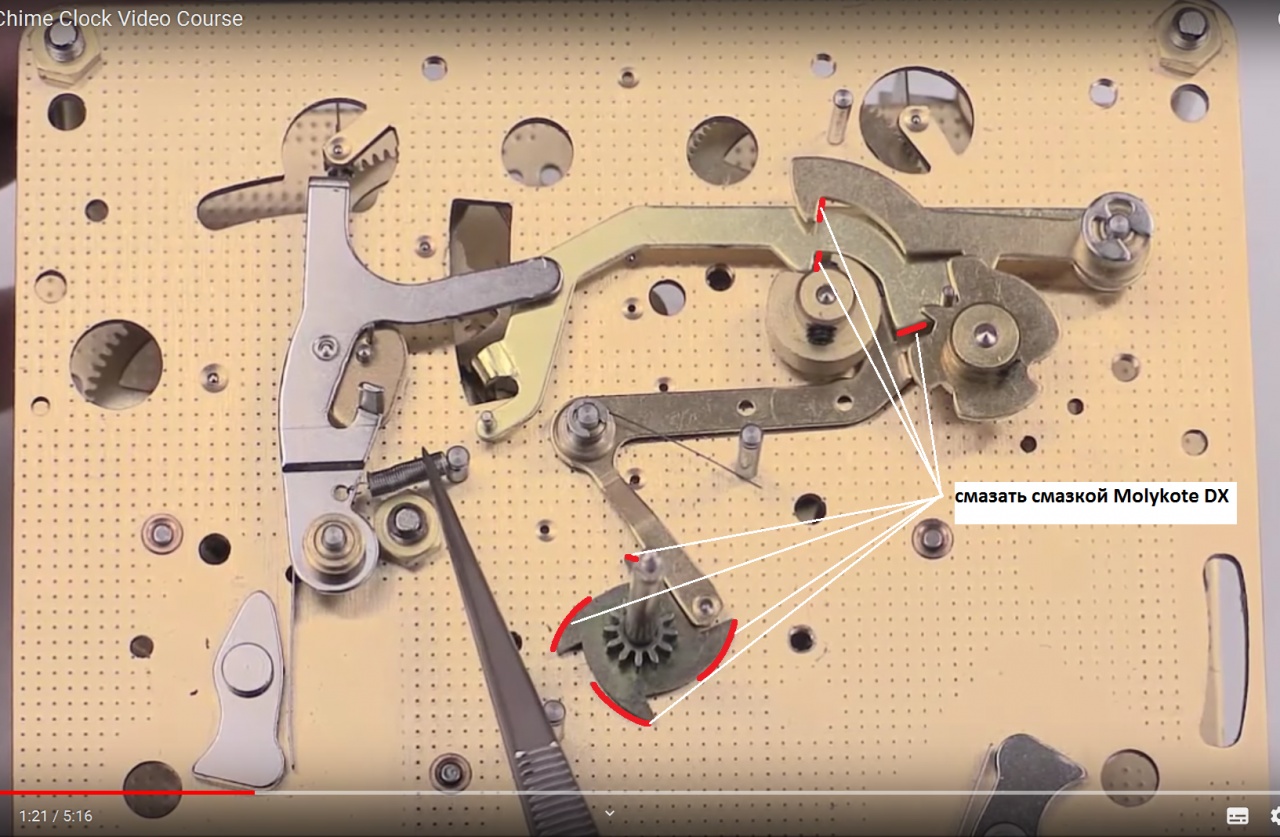 Вложений: 1 без 6 минут час начинается подготовка к бою, когда самая высокая лопасть на минутном трибе начинает поднимать главный рычаг боя, и рычаг автокоррекции, выводя их из зацепа со стопорным кулачком четвертного боя пружина четвертного боя самая большая и сильная, поэтому стопорный кулачок оказывает большое давление на рычаги, и их поднятие сопровождается сильными потерями на трение другими словами - неудачная конструкция и подбор материалов скользящие поверхности кулачка и зацепы рычагов должны быть смазаны консистентной смазкой Molykote DX сам кулачок и рычаги из латуни, что не есть хорошо - применение одинаковых мягких металлов в нагруженной паре трения кроме того, профиль лопастей на минутном трибе далек от рационального, вместо того, чтобы равномерно поднимать рычаг боя в течении всех 15 минут, это происходит за последние 5-6 минут, что требует значительных усилий со стороны механизма хода Вложение 2523871 |
