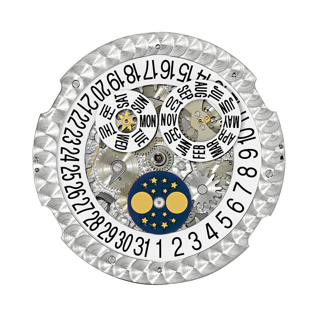 Корпус новинки выполнен из нержавеющей стали, диаметром 40,5 мм, водонепроницаемый до 120 метров. Завинчивающаяся рифленая заводная головка расположена на 3 часах. Сапфировое стекло установлено на передней стороне корпуса и на его задней крышке. Циферблат с горизонтальными полосками, накладными часовыми индексами, часовой и минутной стрелками, из белого золота с люминесцентным покрытием. Модель оснащена мануфактурным автоматическим механизмом 324 S QA LU 24H/303, диаметром 36 мм, толщиной 5,78 мм, состоящим из 347 деталей, на 34 камнях, с балансовой частотой 28800 полуколебаний в час (4 гц), однонаправленным 21-каратным золотым ротором, 45-часовым запасом хода, функциями индикации часов, минут, секунд (посредством соответствующих центральных стрелок), даты (посредством соответствующего цифрового указателя в прямоугольной апертуре, расположенной на 6 часах), дня недели (посредством соответствующего буквенного указателя в прямоугольной апертуре, расположенной на 11 часах), месяца (посредством соответствующего буквенного указателя в прямоугольной апертуре, расположенной на 13 часах), фаз Луны (посредством соответствующего указателя, расположенного на 6 часах) и с 24-часовым аналоговым малым боковым циферблатом на 6 часах. Калибр отменно отделан и декорирован, отмечен Patek Philippe Seal. Поставляется на интегрированном в корпус браслете из нержавеющей стали с полированными центральными звеньями и сатинированными боковыми звеньями. Цена модели составляет 41320 евро. Вложение 2530343Вложение 2530344 Вложение 2530345Вложение 2530346Вложение 2530347Вложение 2530348Вложение 2530349 Вложение 2530350Вложение 2530351 Источник: https://www.timeandwatches.com/2019/...1a-annual.html |