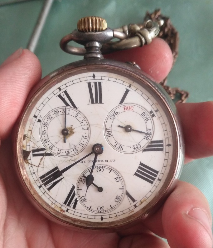 Мне немного странно, что на циферблате и крышках написано Мозер, а на механизме Лонжин. Однако, я в этой эпохе не разбираюсь, возможно, Мозер использовал чужие механизмы. Вот нашел аналогичные с клеймом Лонжин.