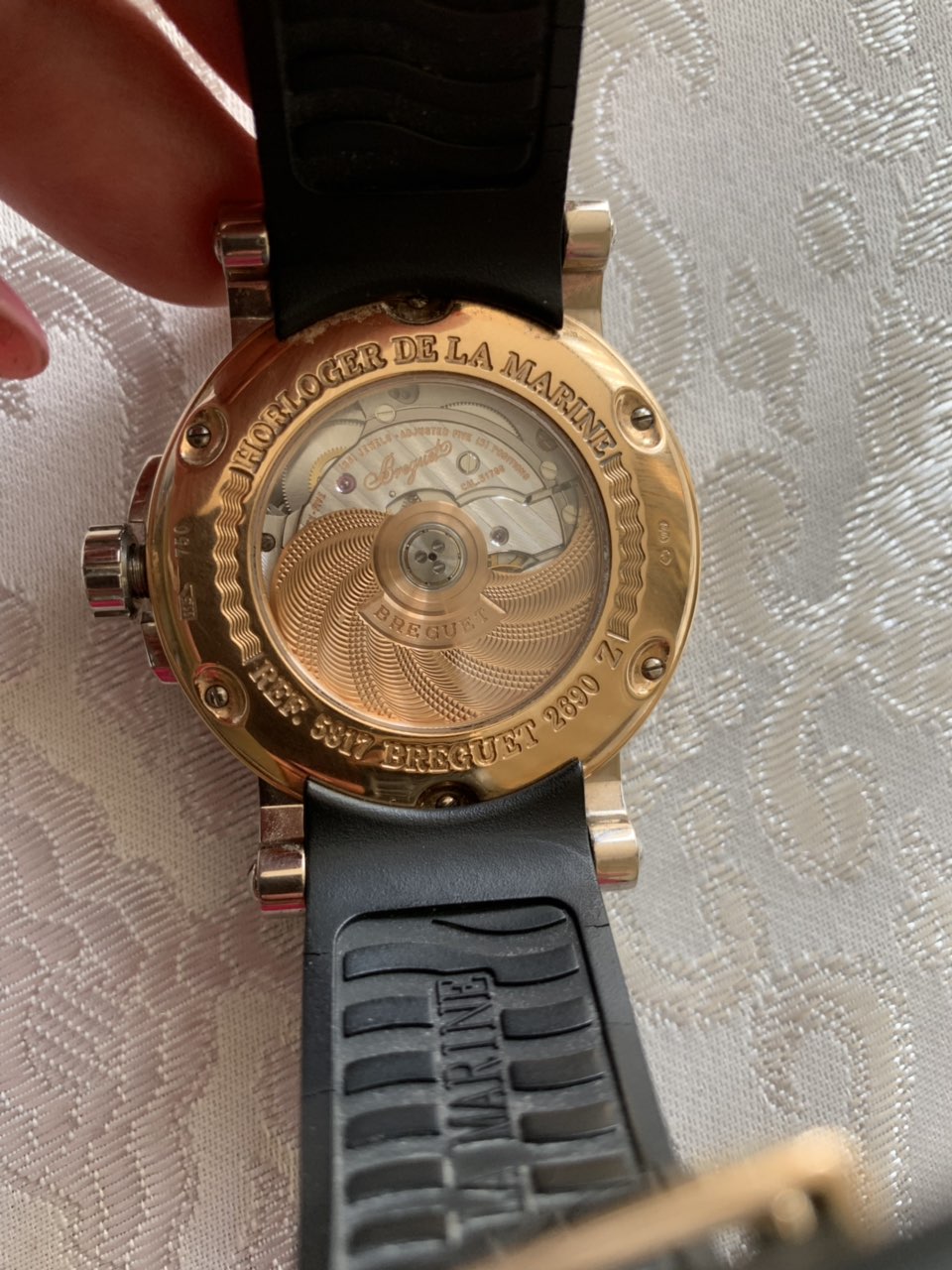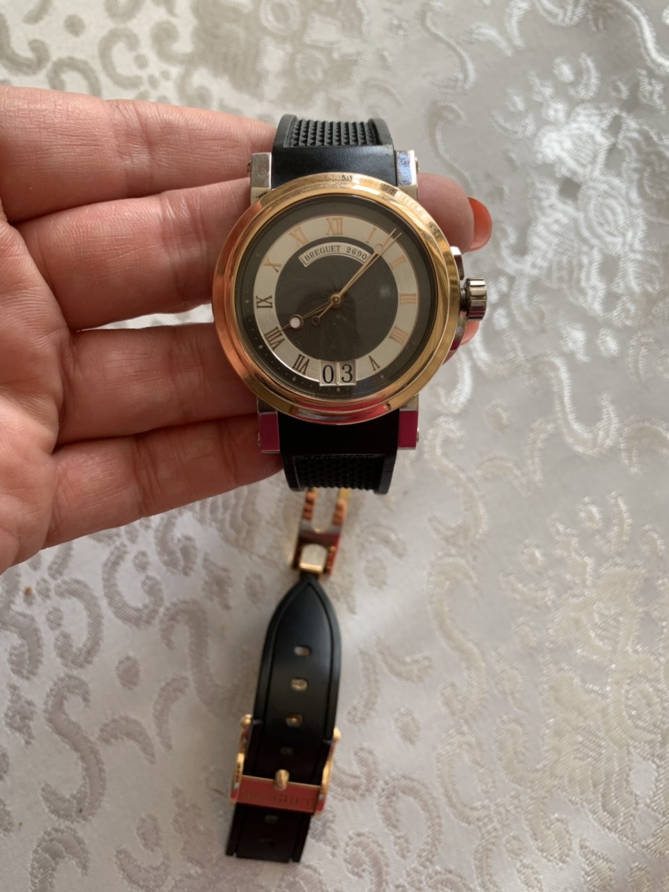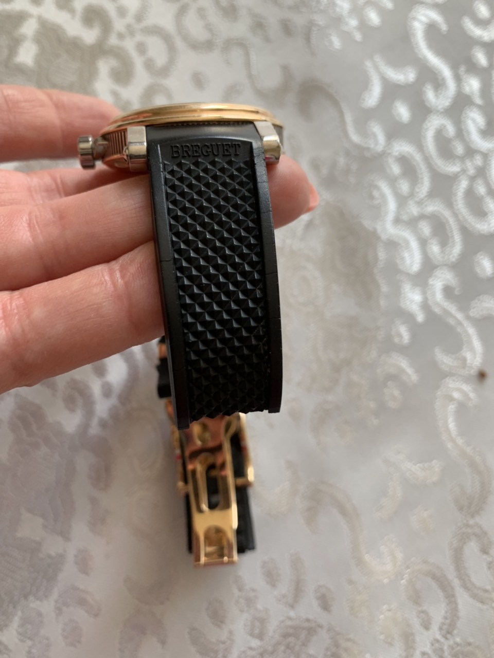 Я купил кожаный ремешок на Bregue Marine 5847. Каучук быстро изнашивается. В бутиках каучук стоит 13500 рублей, кожа 32000. На Авито можно взять новый оригинал кожа крокодила 10-16 тыс. рублей.