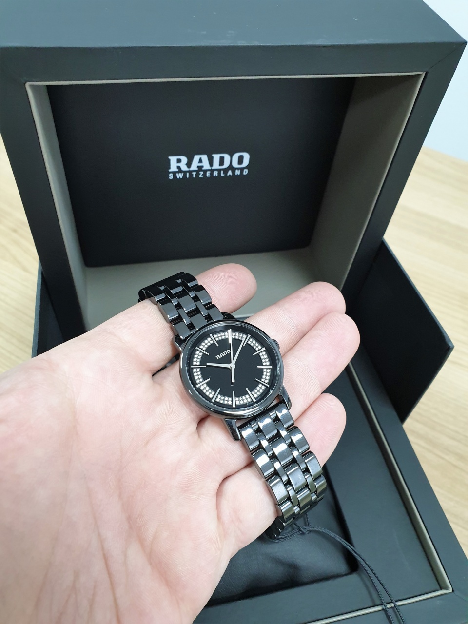 ЖЕНСКИЕ ШИКАРНЫЕ RADO DIAMASTER 96 БРИЛЛИАНТОВ! ЧЕРНАЯ ГЛЯНЦЕВАЯ КЕРАМИКА 33 мм/8 мм КВАРЦ