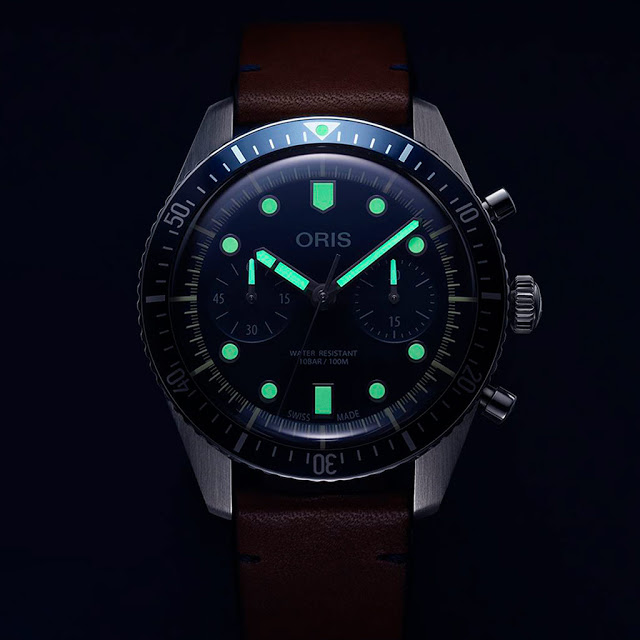 Круглый винтажный корпус Sixty-Five новинки, изготовленный из нержавеющей стали, диаметром 43,0 мм, водонепроницаемый до 100 метров. На торце рифленой завинчивающейся заводной головки, расположенной на 3 часах, выгравировано наименование бренда Oris. Пушеры хронографа размещены на 2 и 4 часах. Вращающийся однонаправленный алюминиевый с темно-синим покрытием. Задняя крышка часового корпуса завинчивающаяся, гравированная. Выпуклое сапфировое стекло с внутренним антибликовым покрытием защищает циферблат темно-синего цвета с накладными часовыми маркерами, покрытыми, как и стрелки, люминесцентным бежевым составом SuperLumiNova, светящимся во тьме зеленым цветом. Модель оснащена швейцарским автоматическим механизмом Sellita SW510 с 48-часовым запасом хода, функциями индикации часов, минут (посредством соответствующих центральных стрелок), секунд (на соответствующем малом боковом циферблате, расположенном на 9 часах), а также с хронографом (посредством соответствующей центральной секундной стрелки и круглого аналогового 30-минутного счетчика, расположенного на 3 часах). Поставляется на светло-коричневом кожаном ремешке с синей прошивкой и с застежкой из нержавеющей стали. Цена модели Oris Divers Sixty-Five Chronograph Bucherer Blue Editions составляет 3950 швейцарских франков. Вложение 2555640Вложение 2555642Вложение 2555643 Вложение 2555644 Вложение 2555645 Вложение 2555646 Источник: https://www.timeandwatches.com/2019/...ronograph.html |