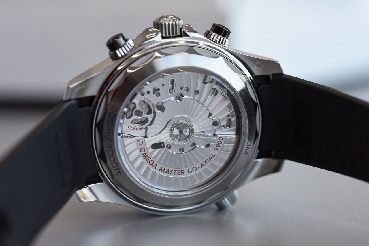 Хронограф-версия модели базируется на проверенном временем калибре 9900 (9901 для золотой версии), который в прошлом использовался в хронографах серии Planet Ocean 600. Теперь этот механизм с колонным колесом и двумя заводными барабанами сертифицирован как Master Chronometer, а значит, способен выдерживать магнитные поля силой до 15000 Гаусс. Еще одно новшество – рассмотреть механизм можно через прозрачную заднюю крышку корпуса. Запаса хода механизму хватает на 60 часов работы без подзавода.