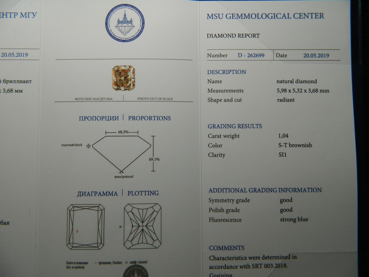 Кольцо с бриллиантом 1.04 карата. Заключение МГУ. Недорого