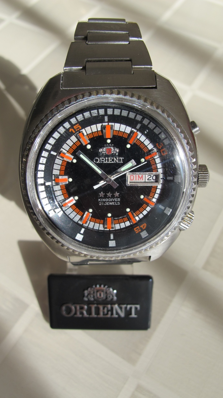 Пол: мужские Год покупки: не указано БУ часы, состояние: AA (отличное) http://forum.watch.ru/images/market-question.png Полировка: не указано Цена: 12 000 руб. (продажа) Коробка: нет Документы: нет Вашему вниманию предлагаются винтажные часы производства Японии Orient King Diver 21 jewels. Механика. Материал корпуса и браслета - сталь. Размер корпуса 45(без ЗГ)Х50 мм., толщина - 15 мм. Циферблат черного цвета, накладные символы и маркеры. Вращающийся двухсторонний внутренний безель, вращение нижней головкой. Светомасса на часовых метках и стрелках. Браслет оригинальный, длина вместе с часами 21,2 см. Часы в отличном коллекционном состоянии, единственное замечание - иногда проскальзывает внутренний безель при вращении. Ничего не разбирал, не ремонтировал, не регулировал. Часы в том же состоянии, что и достались много лет назад. Продаю в связи с оптимизацией коллекции. Цена 12 000 рублей. Вложение 2671758 Вложение 2671759 Вложение 2671760 Вложение 2671761 Вложение 2671762 Вложение 2671763 |