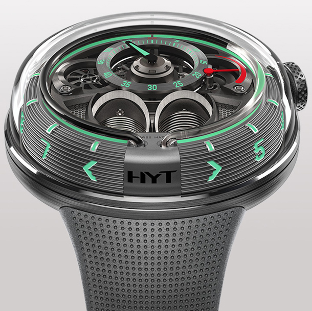 HYT H1.0 – новинка от HYT, мануфактуры из Невшателя, чьи часы основаны на принципах гидромеханики. Швейцарский часовой бренд стал известен благодаря жидкостному отображению времени, используемому в часах. С момента основания бренда в 2012 году каждый из релизов HYT был снабжен жидкой часовой стрелкой.
