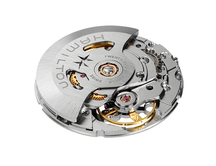 Модель оснащена швейцарским автоматическим механизмом Hamilton H10 (базовый калибр ETA Powermatic), на 25 камнях, с балансовой частотой 21600 полуколебаний в час (3 гц), 80-часовым запасом хода, функциями индикации часов, минут, секунд (посредством соответствующих центральных стрелок, в том числе секундной - с красным наконечником) и даты (посредством соответствующего цифрового указателя в прямоугольной апертуре, расположенной между 4 и 5 часами).