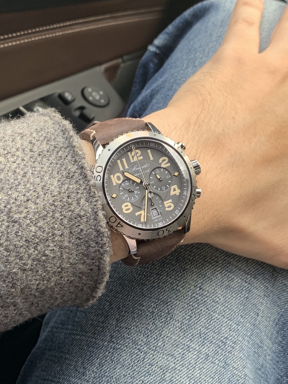 Фотографии, как это часто бывает с часами, не вполне передают) цифер в реале гораздо интереснее, чем на фото) на мой скромный вкус, в линейке пилотов бреге эти часы наиболее симпатичные по дизайну)