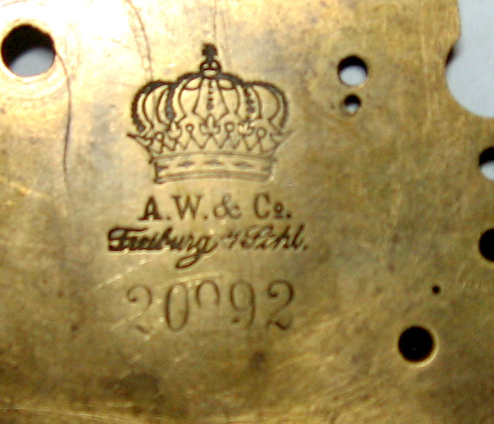 Вы совершенно правы, клеймо принадлежит фирме A. Willmann & Co. в городе Фрайбург, район Силесия Германии. Фирма была образована в 1872 году, и, насколько известно, первые декады выпускала около 2000 готовых часов в год. Т.е., основываясь на серийном номере ваших часов, можно предположить, что они были выпущены в 1880-х. Нужно сказать, что даже тех фото, что вы предоставили, достаточно, чтобы понимать, что часы очень качественные и достойны хорошей реставрации. Прилагаю несколько реклам фирмы из немецких газет. Слева-направо: 1882г, 1898г. С ув, Олег |