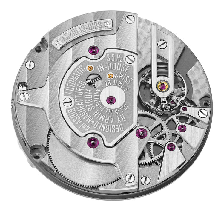 Новинка является первенцем коллекции System 78 и выполнена в стальном корпусе диаметром 41 мм и толщиной 12.65 мм (WR 30 м), характерным признаком которого являются Г-образные дужки крепления ремешка. Циферблат часов исповедует фирменный подход Armin Strom, где наряду со смещенным от центра блоком стрелочной индикации соседствуют открытые узлы часового калибра, закрепленные под U-образными мостами — микро-ротор в положении «1 час», стрелочный механизм у отметки «3 часа» и заводной барабан на «5 часах». Верхняя крышка последнего оснащена женевским колесом, в задачу которого входит ограничение вращений заводного барабана до 9 оборотов вместо максимальных 12.5 — иными словами, запас хода калибра ASB19 с 3.5-герцовым балансом превентивно снижен до значения в 72 часа для того, чтобы предотвратить ухудшение показателей точности механизма при малом заводе пружины. Первоначальное предложение распространяется на две референции стоимостью 16900 CHF, выполненные в черном и синем цветовых кодах, где соответствующему оттенку циферблата соответствует черный либо синий ремешок из кожи аллигатора. Вложение 2789740Вложение 2789741Вложение 2789742 Источник: https://watchdaily.ru/news/16237 |