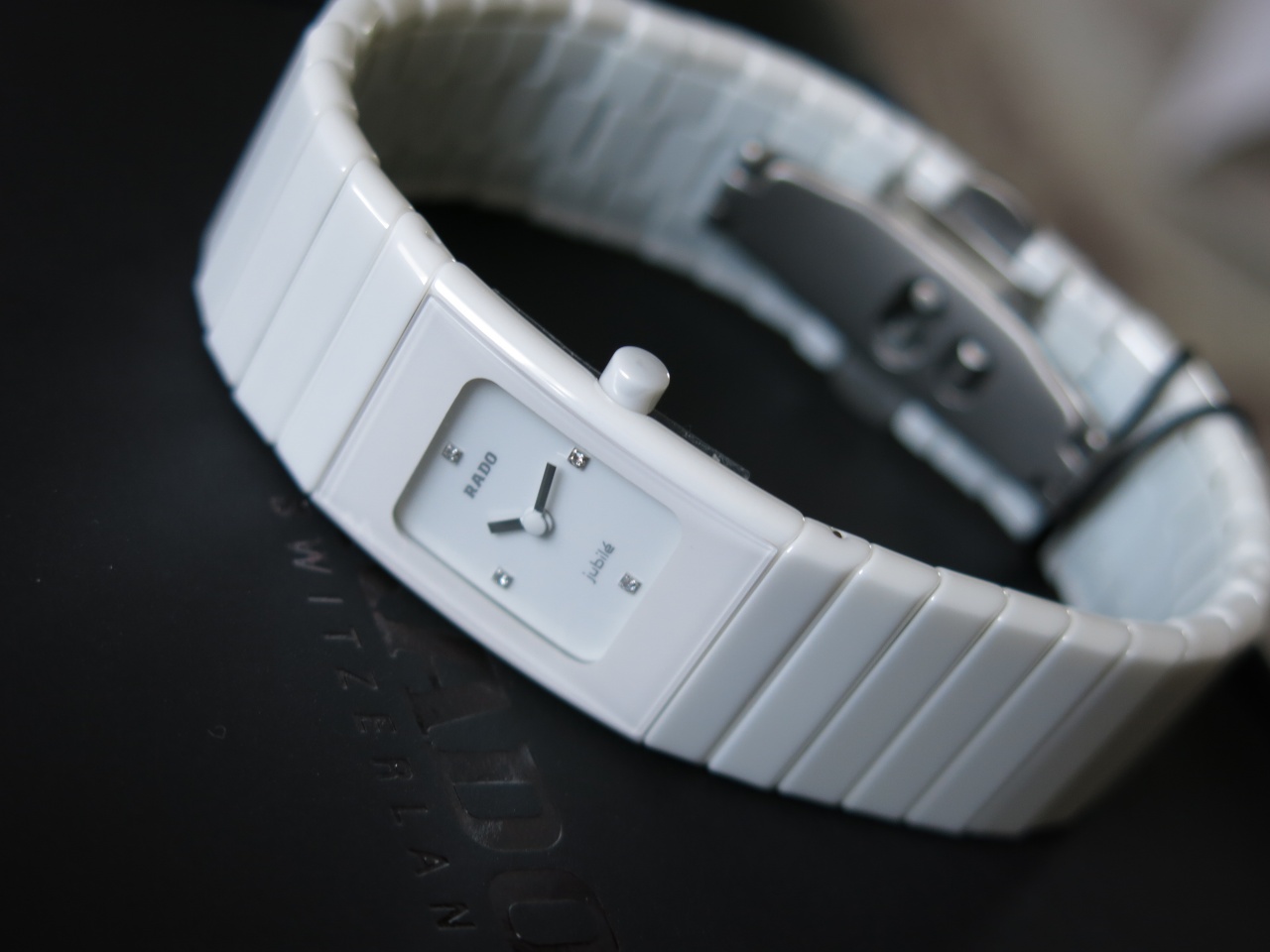 ЯРКИЕ ЭЛЕГАНТНЫЕ женские Rado Ceramica 4 брильянта Кварц / 19x25 мм / Белая керамика