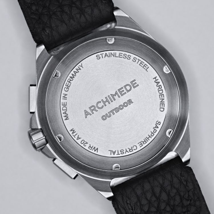 OutDoor 41 Chronograph от Archimede Вложений: 5 Дизайн новой модели OutDoor 41 Chronograph от немецкой часовой компании Archimede выполнен в элегантном спортивном стиле. Круглый сатинированный корпус, изготовленный из нержавеющей стали, диаметром 41,2 мм, толщиной 13,8 мм, с 20-миллиметровым расстоянием между дужками, водонепроницаемый до 200 метров. На торце завинчивающейся рифленой заводной головки, расположенной на 3 часах, выгравирован логотип бренда Archimede. Пушеры хронографа, выполненные в прямоугольной форме, размещены на 2 и 4 часах. Задняя крышка часового корпуса глухая завинчивающаяся. Сапфировое стекло с антибликовым покрытием защищает матово-черный циферблат с арабскими цифрами, часовыми индексами, часовой и минутной стрелками, покрытыми люминесцентным составом SuperLuminova белого цвета. Модель оснащена швейцарским автоматическим механизмом Valjoux ETA 7750 в версии Elaboré, в формате tricompax, на 25 камнях, с балансовой частотой 28800 полуколебаний в час (4 гц), 48-часовым запасом хода, с функциями индикации часов, минут (посредством соответствующих центральных стрелок), секунд (на соответствующем малом боковом циферблате, расположенном на 9 часах), даты (посредством соответствующего цифрового указателя в прямоугольной аптертуре, расположенной на 3 часах), а также с хронографом (центральная секундная стрелка, круглый аналоговый 30-минутный счетчик, расположенный на 12 часах, круглый аналоговый 12-часовый счетчик, расположенный на 6 часах). Поставляется на браслете из нержавеющей стали на черном кожаном ремешке с белой прошивкой и с застежкой из нержавеющей стали. MSRP модели Archimede OutDoor 41 Chronograph составляет, в зависимости от комплектации, 1250 или 1310 евро. Вложение 2808143Вложение 2808144Вложение 2808145Вложение 2808146 Источник: https://forums.timezone.com/index.ph...=0#msg_7636249 |
