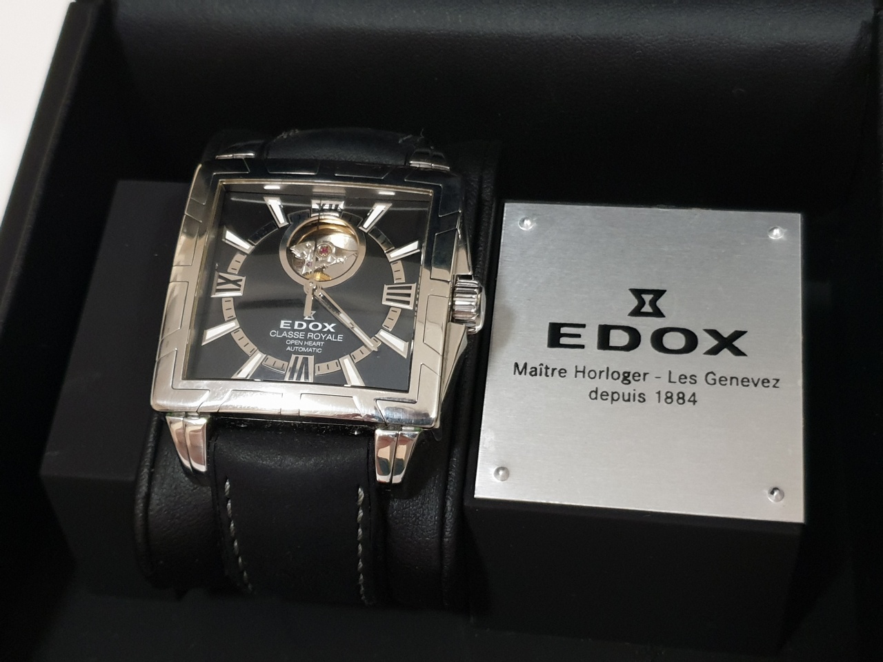 Edox Classe Royale Open Heart 85007-3AIN мощный брутальный автомат с черным лицом