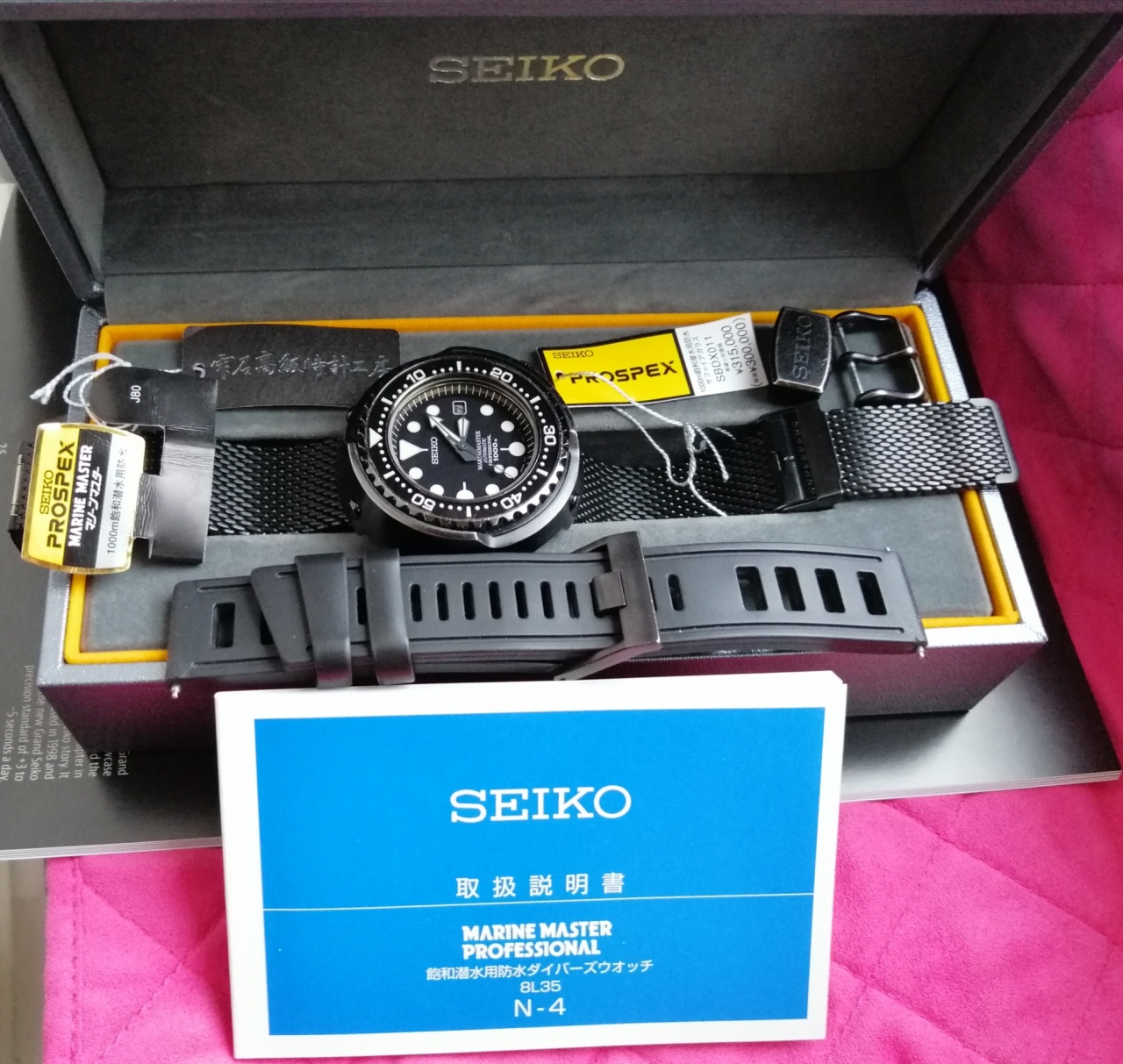 Пол: мужские Год покупки: 2012 БУ часы, состояние: AA (отличное) http://forum.watch.ru/images/market-question.png Полировка: нет Цена: 2 400 USD (продажа или обмен) Коробка: есть Документы: есть Вложение 2834066Вложение 2834067 Вложение 2834068Вложение 2834070 Вложение 2834071Вложение 2834072 Вложение 2834073 Вашему вниманию предложу редкий вариант Тунца-Prospex Emperor Tuna SBDX011 Marine Master 1000M Дизайн циферблата и стрелок от первого механического 600м тунца! Часы на полном комплекте,родной силикон оторвался(имеется в комплекте) и был заменен на итальянский Isofrane,так же добавлен черный меш браслет,на котором чаще всего и носятся.Все функции работают безотказно.Обслуживание не проводилось как и полировка.На кожухе есть следы носки, на фото видно.Гарантийка-не заполнялась. Описание: 1)Материалы-Тинан+Сталь. 2)Механизм-8L35 26-Jewel (Grand Seiko Automatic Caliber). 3)Размер без ЗГ по кожуху-52мм! 4)Вес часов без браслета-147 грамм! 5)Стекло толстый сапфир. 6)Люм на стрелках и циферблате-LumiBrite завлено от 3-5 часов.Уже стал приобретать красивый желтоватый цвет( под винтаж). Что касаемо обмена-интересует винтаж(дайвера+хронографы) не только Japan,Swiss так же.Доплата в обе стороны.С продажей не тороплюсь. Все свои мысли и вопросы можно задать на прямую.;) |