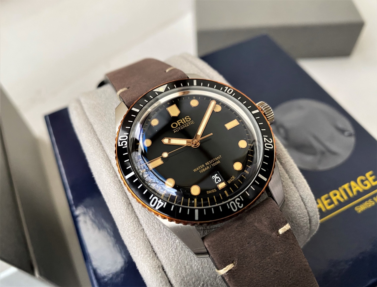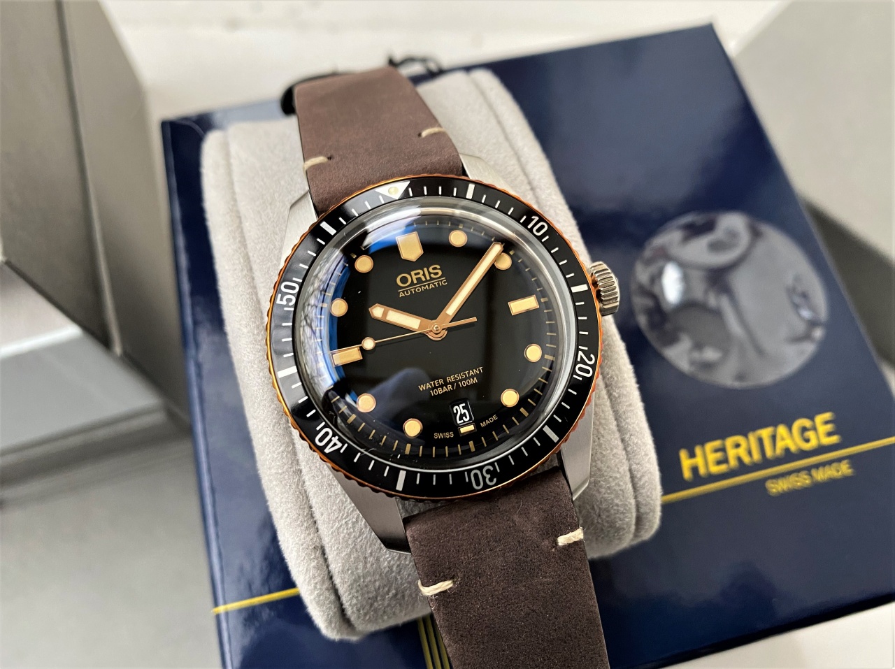 ВПЕРВЫЕ НА МАРКЕТЕ / ДАЙВЕР / ORIS 65 / БРОНЗОВЫЙ БЕЗЕЛЬ! / ЧЕРНЫЙ ЦИФЕРБЛАТ / КОЖА / 40 мм