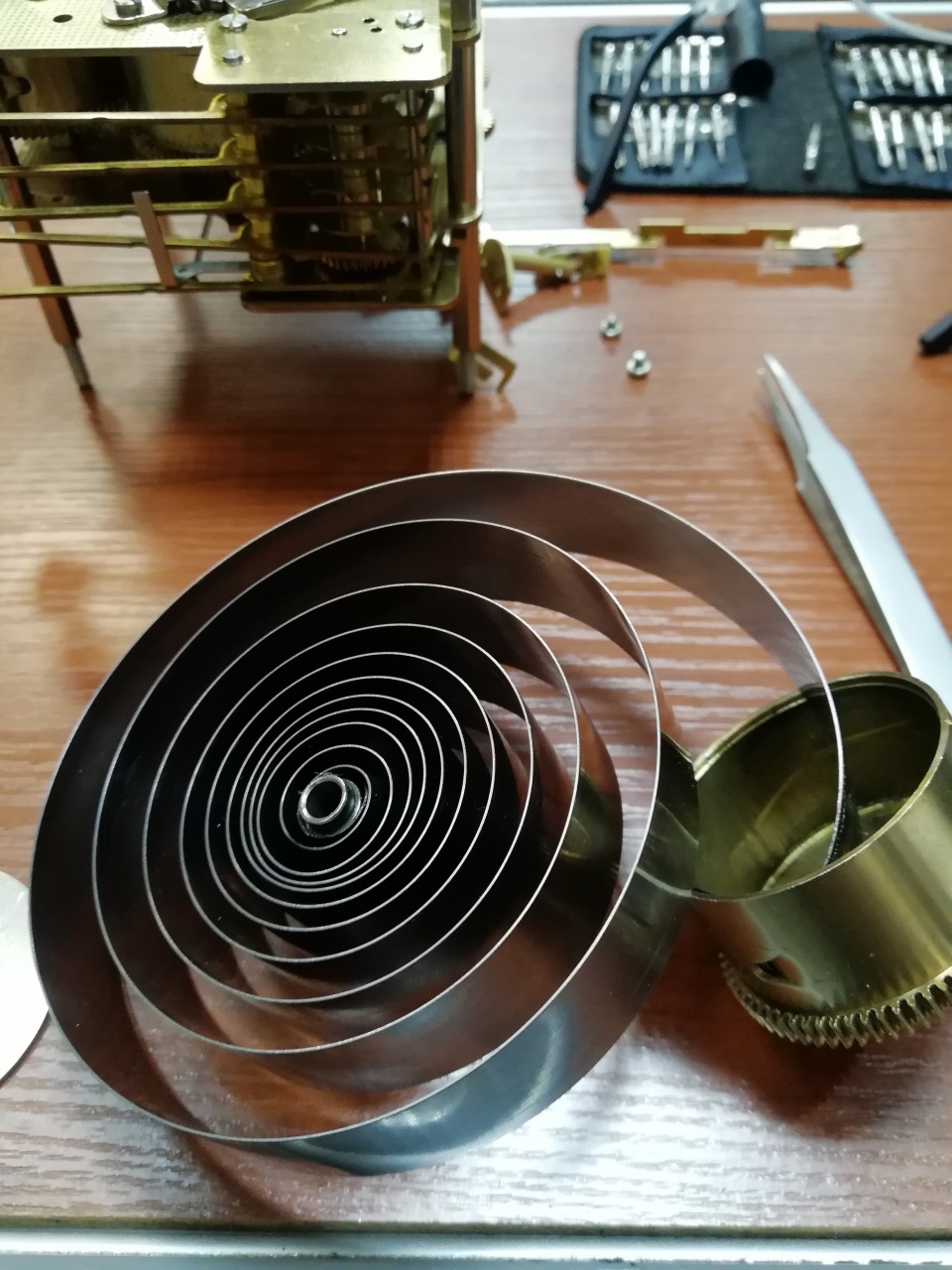 Снял пружину от настенных часов Hermle, помыл, смазал, обратно ставлю, но она проворачивается внутри. Несколько раз подгибал конец, который на втулку крепится, но она всё равно соскакивает. Может кто подскажет какие идеи? Может прибор есть какой, что б загнуть пружину поплотнее? Ничего не стёрлось, всё в хорошем состоянии.