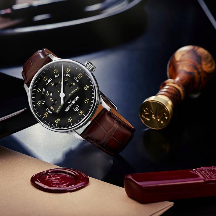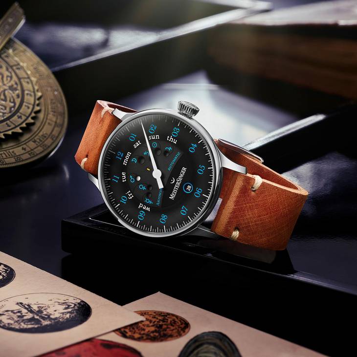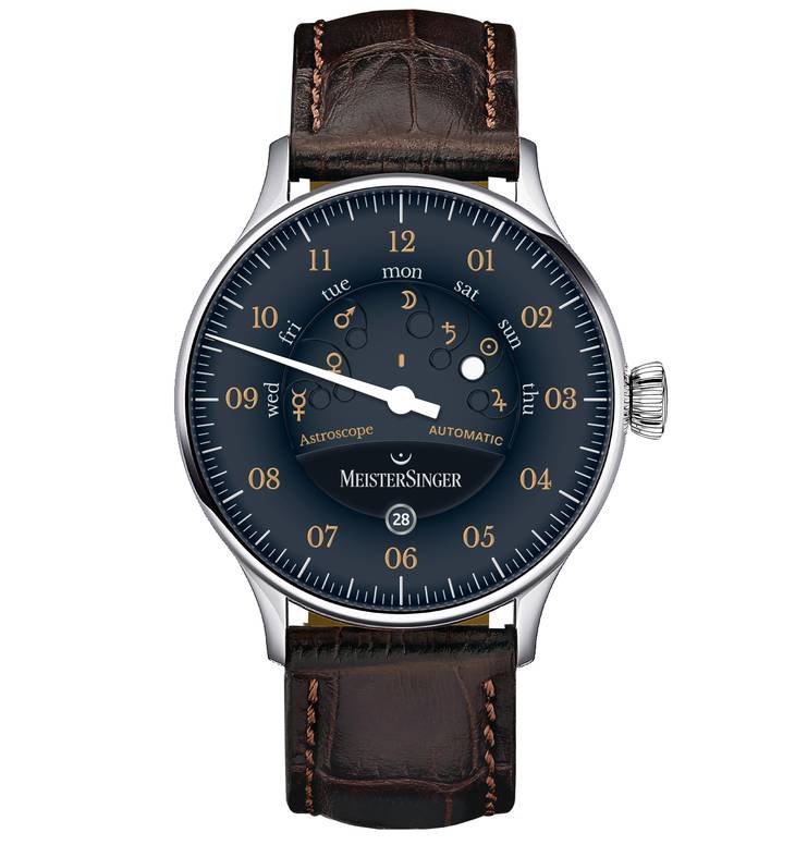 После модели с индикатором лунных фаз Lunascope, MeisterSinger не спешат расставаться с астрономической темой. Новые Astroscope отображают дни недели, каждый из которых с давних времен связан с каким-либо небесным телом: понедельник – Луна, вторник – Марс, среда – Меркурий, четверг – Юпитер, пятница – Венера, суббота – Сатурн, воскресенье – Солнце. Планеты обозначены соответствующими символами и вместе они выстраиваются в созвездие. В понедельник белый кружок появляется в районе 12 часов, выделяя Луну; на следующий день, во вторник, отметка перемещается не линейно, а в обратную сторону к Марсу; в среду точка оказывается на отметке «9» на Меркурии, а в четверг уже в положении «3» у Юпитера… Индикатор, разумеется, не прыгает взад и вперед – под циферблатом располагается диск с нужным количеством белых отметок, который вращается самым обычным образом, окрашивая поочередно нужные дни недели. MeisterSinger Astroscope доступен в двух версиях: с арабскими цифрами и символами голубого или желтого цвета и подходящими в тон кожаными ремешками. Основное время, как обычно, отсчитывается с помощью всего одной стрелки – фирменной черты всех изделий MeisterSinger. Над круглым окошком даты у отметке «6» и логотипом MeisterSinger выделяется черта, символизирующая горизонт, с которого открывается вид на звездное небо. Швейцарский механизм с автоподзаводом Sellita SW 220 оснащен 38-часовым запасом хода и виден сквозь прозрачную заднюю крышку. Стальной корпус диаметром 40-мм обладает водонепроницаемостью в 50 м. Вложение 2875652Вложение 2875653 Вложение 2875654 Источник: https://watchj.ru/magazine/news/meis...er-astroscope/ |