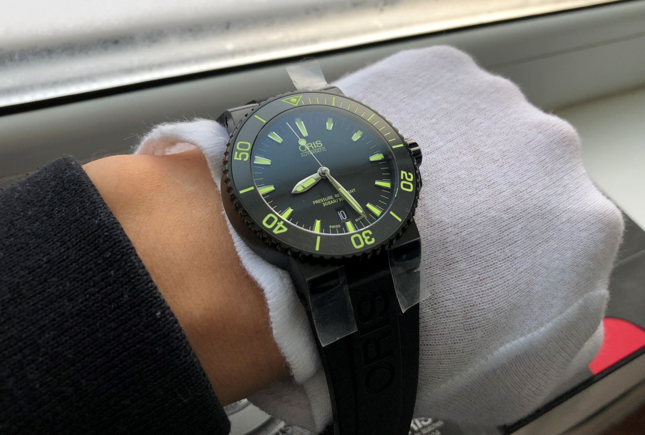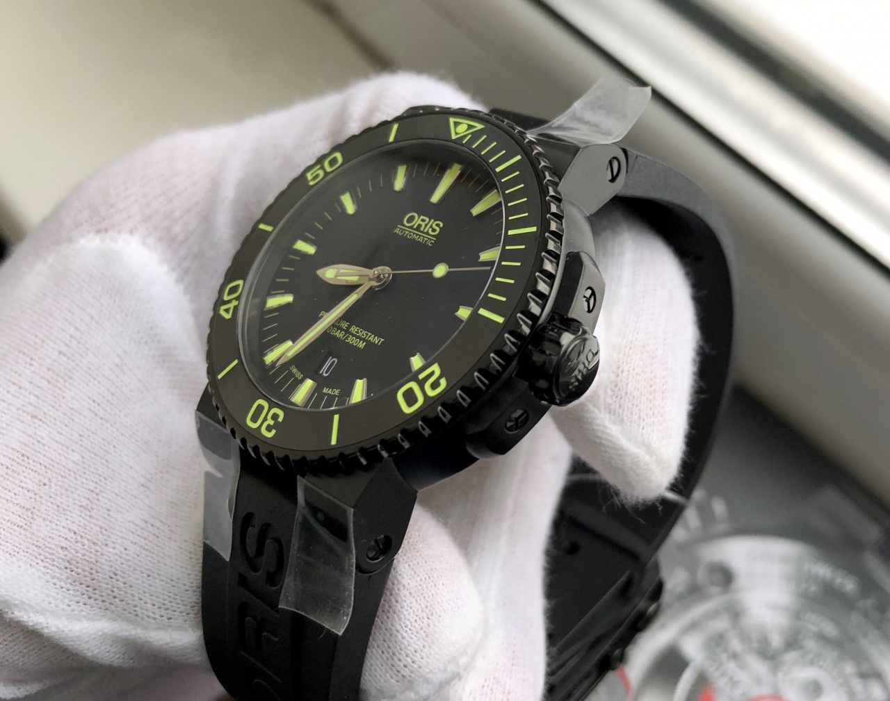 [ ДАЙВЕР ] / ORIS AQUIS - 43ММ / КЕРАМИЧЕСКИЙ БЕЗЕЛЬ / DLC / КИСЛОТНЫЕ МЕТКИ / КАУЧУК