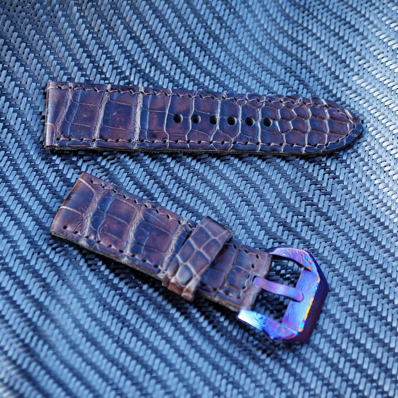 Ремешок из синего крокодила. Итальянская выделка. Прошит вручную.
