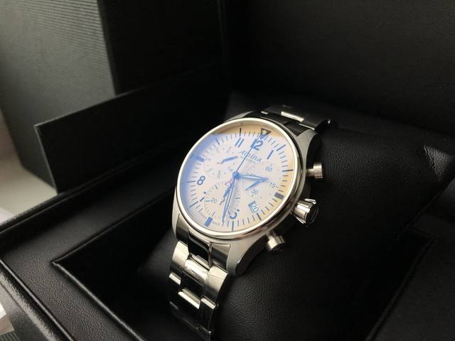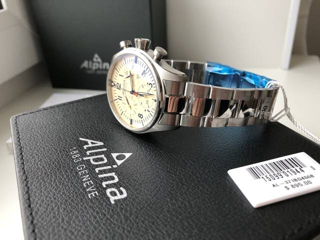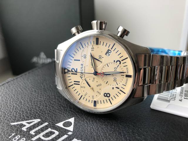 Alpina Startimer Chronograph на браслете. Пилот по ВСЕМ канонам 42 мм, двойной антиблик, дата и день, яркий люм! Супер цена