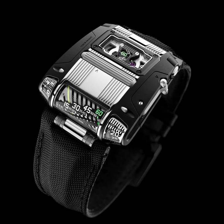 Часы компании Urwerk частенько вызывают полярную реакцию: уж слишком дизайны их корпусов и манера отображать время не вписываются в общепринятые представления. И новый Urwerk UR-111C TT, ставший очередным прямым наследником нашумевшего UR-CC1 King Cobra, вряд ли что-то изменит в сложившемся раскладе. На сей раз одна половина стального корпуса размером 42 на 46 мм предстает в первозданном виде, а вторая – приобрела черный оттенок под воздействием PVD-напыления. Крупный центральный цилиндр, отображающий ретроградные минуты, сначала вращается на 300 градусов, а затем мгновенно прыгает на оставшиеся 60. Однако благодаря оптической иллюзии наблюдателю кажется, что его движение непрерывно. Часовой дисковый указатель в окошке слева визуально уравновешивается точно таким же секундным справа. Более того, секунды здесь можно отслеживать и на дополнительном индикаторе на верхней крышке корпуса. Разумеется, без сложной системы увеличительных линз тоже не обошлось. Всю эту красоту приводит в движение автоматический механизм с двухдневным запасом хода. Urwerk UR-111C TT дополняется черным тканевым ремешком и выпускается лимитированной серией в 25 экземпляров. Цена новинки – CHF 130000. Вложение 2888400Вложение 2888401 Источник: https://watchj.ru/magazine/news/urwe...111c-two-tone/ |