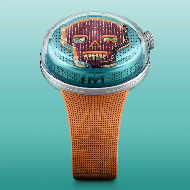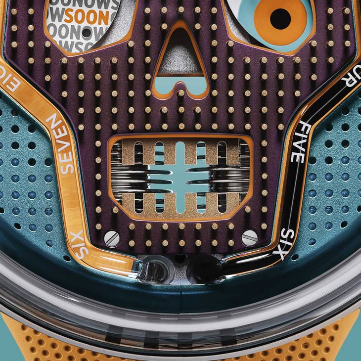 Модель с жидкой индикацией и огромным черепом, выложенным из сотен драгоценных игл, возвращается. На этот раз в еще более пестрой цветовой палитре.