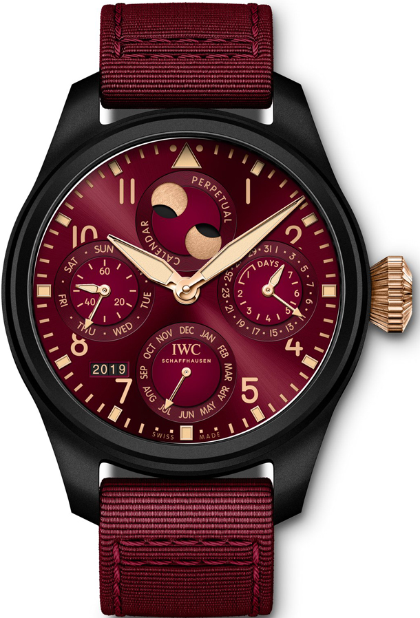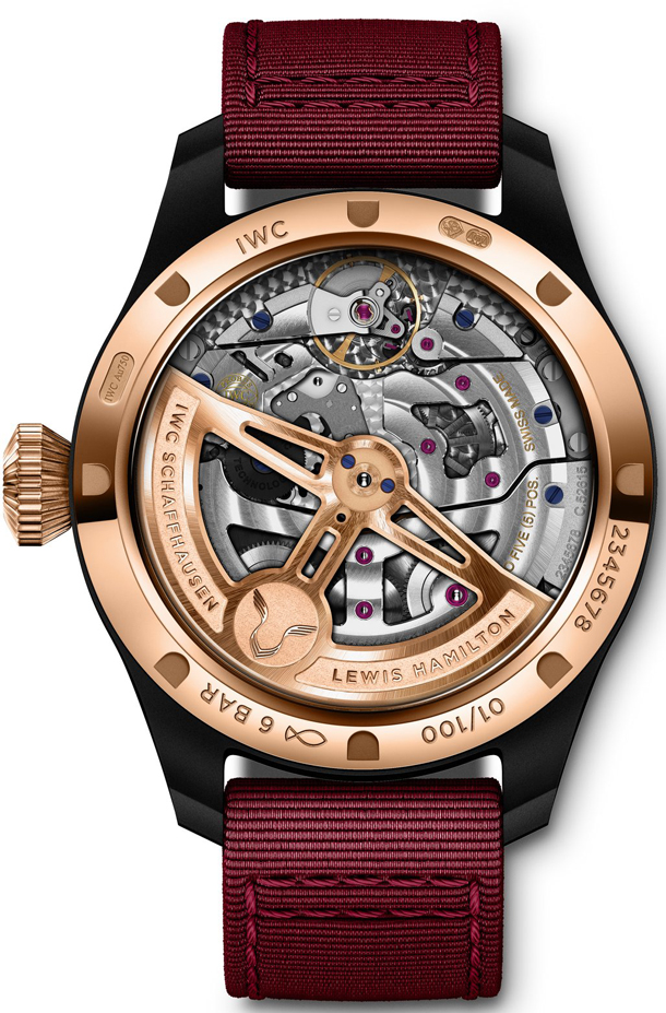 IWC Schaffhausen представляет модель Lewis Hamilton Big Pilot’s Perpetual Calendar. Новинка выпущена ограниченной серией 100 штук, сочетает в себе черный керамический корпус и бордово-красный циферблат с коронкой из 18-каратного розового золота. Британский гонщик вместе с дизайнерами IWC создали уникальные часы.