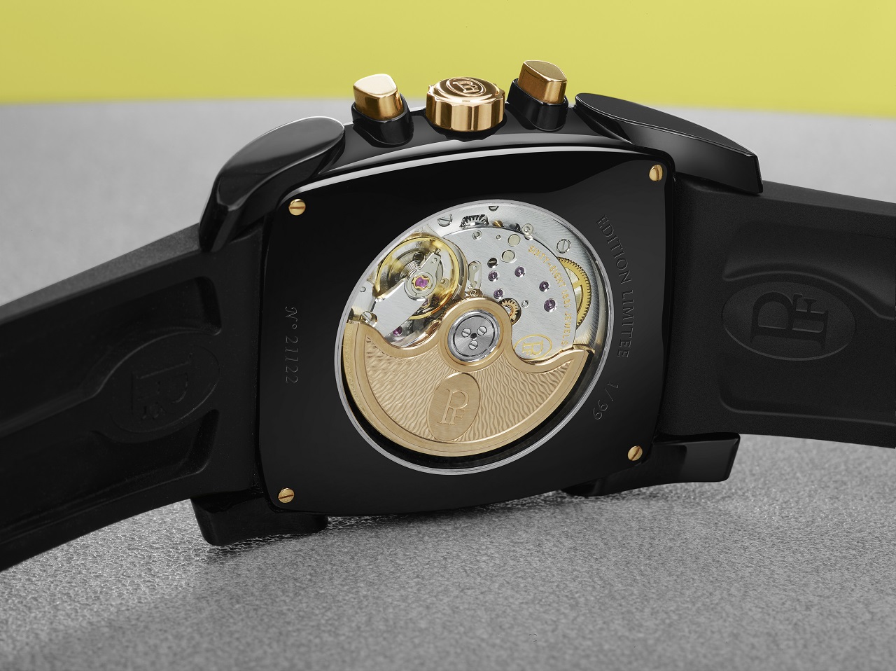 Соотношение сторон изделия составляет 44.45 х 39.2 мм при толщине 12.8 мм и водонепроницаемости WR 30 м. Блеск полированных поверхностей соседствует с роскошью 18-каратного розового золота, которое присутствует как на циферблате, так и в качестве материала для пушеров хронографа и заводной коронки, в то время как зернистая отделка корпуса отождествлена с родированными и стальными элементами. Циферблат часов использует тренд, заданный в часах Kalpa годом ранее — полупрозрачное основание из дымчатого сапфира, поверх которого нанесены накладные детали разметки как основной индикации, так и накопителей хронографа. Общий стиль Kalpagraphe Noir поддерживает и ремешок из гладкого черного каучука, в комбинации с которым выступает классическая застежка из золота либо стали. За сапфировым стеклом задней крышки корпуса разместился автоматический калибр PF 334 с 4-герцовым балансом и запасом хода в 50 часов — модульный хронограф авторства придворной фабрики механизмов Vaucher Manufacture Fleurier, оснащенный полноформатным ротором из розового золота либо вольфрама. Одетые в черную ливрею часы являются частью двух ограниченных серий, каждая из которых насчитывает 99 экземпляров, пронумерованных в формате «EDITION LIMITEE xx/99». Вложение 2922641Вложение 2922642Вложение 2922643Вложение 2922644 Вложение 2922645 Источник: https://watchdaily.ru/news/17432 |