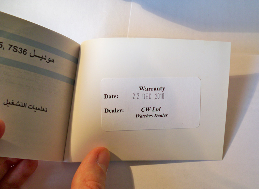у официального дилера починить за бесплатно не получится? Я не знаю дает ли Сейко карточки с надписью international warranty, но в моей посылке таковой не было, только на последней странице инструкции вклеили бумажку с датой покупки Вложение 88122 Вложение 88123 |