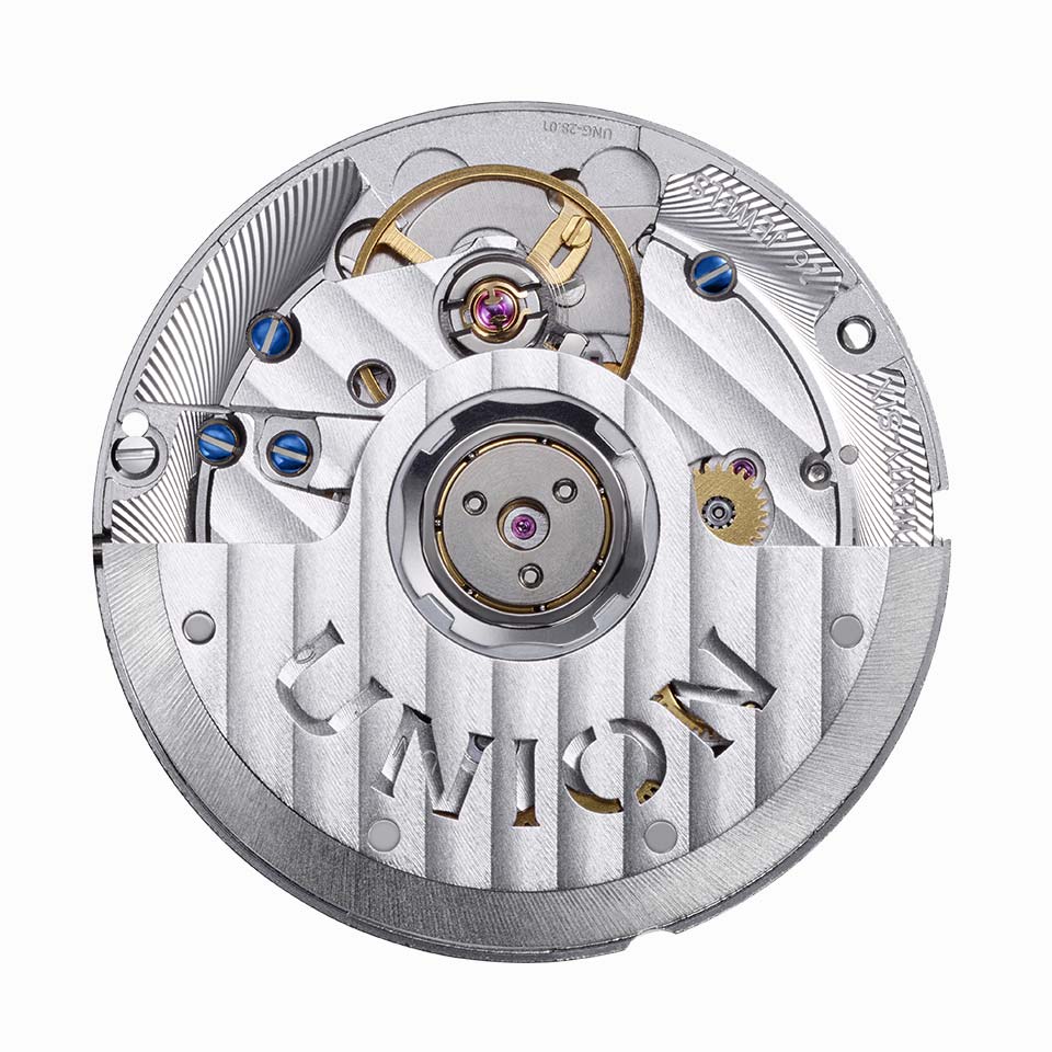 Модель оснащена немецким автоматическим калибром UNG-07.01, декорированным, собранным и откалиброванным вручную, с балансовой частотой 25200 полуколебаний в час (3 гц), 60-часовым запасом хода, функциями индикации часов, минут, секунд (посредством соответствующих центральных стрелок) и даты (посредством соответствующего цифрового указателя, в прямоугольной апертуре, расположенной на 3 часах).