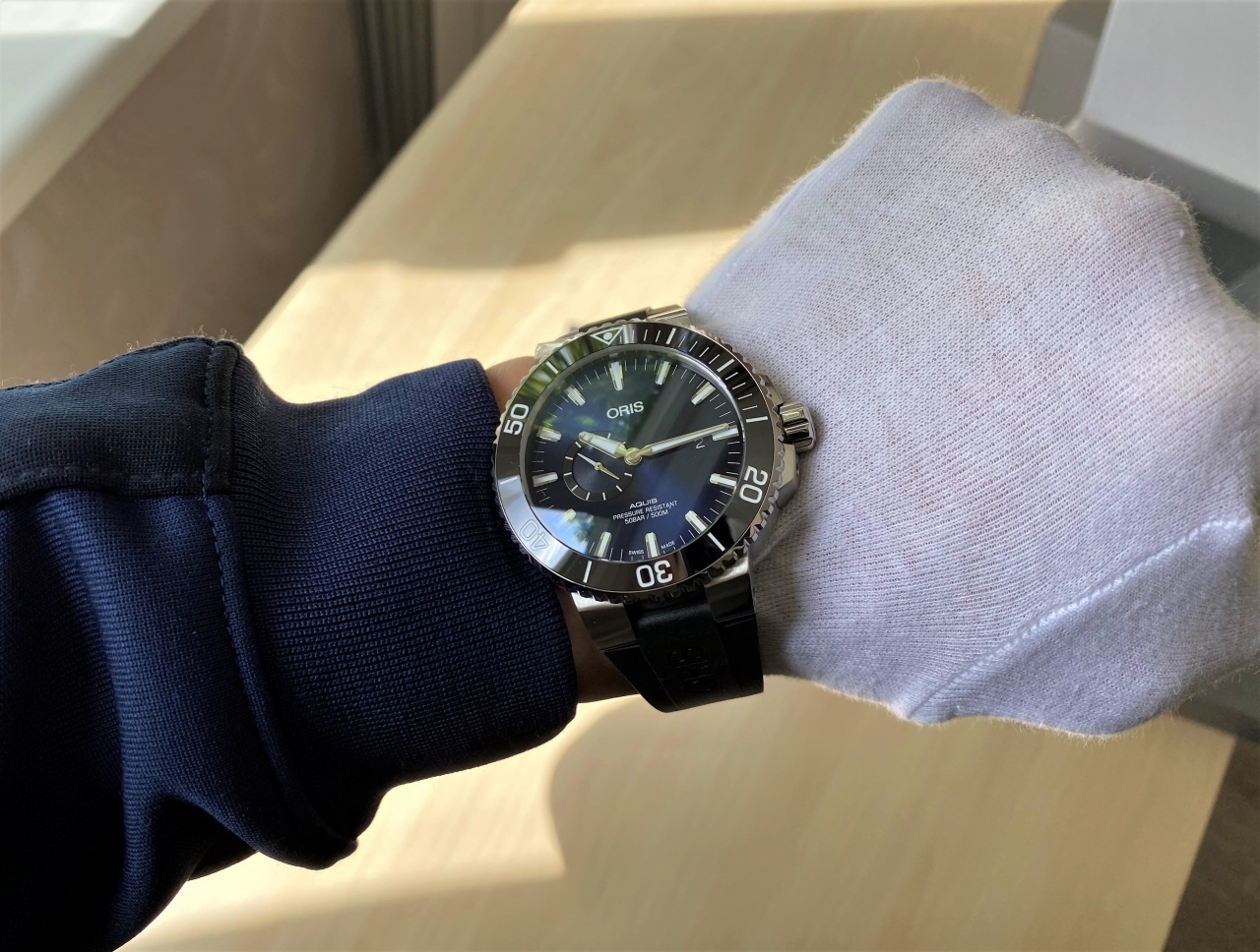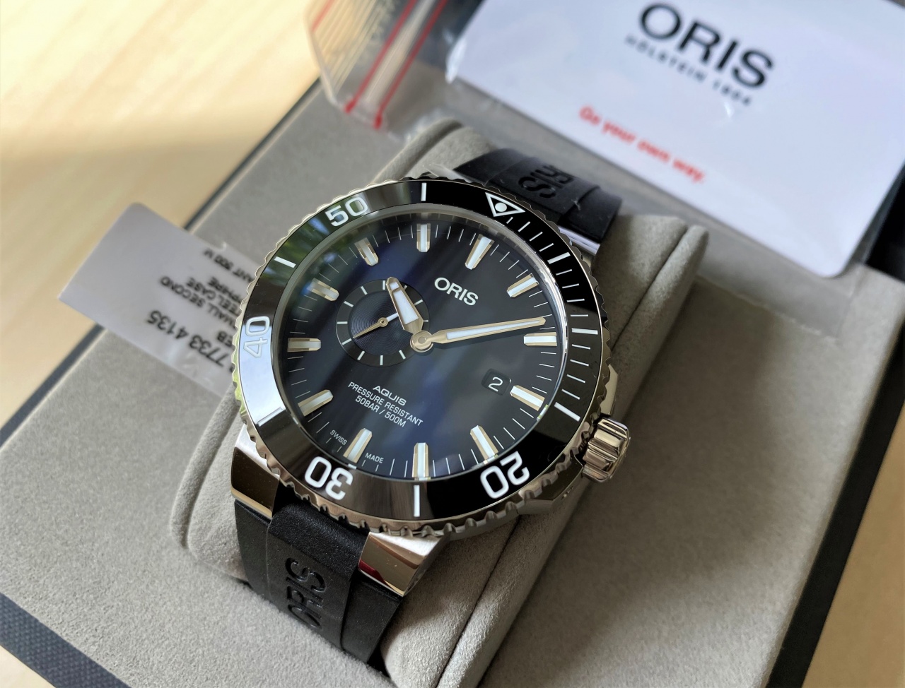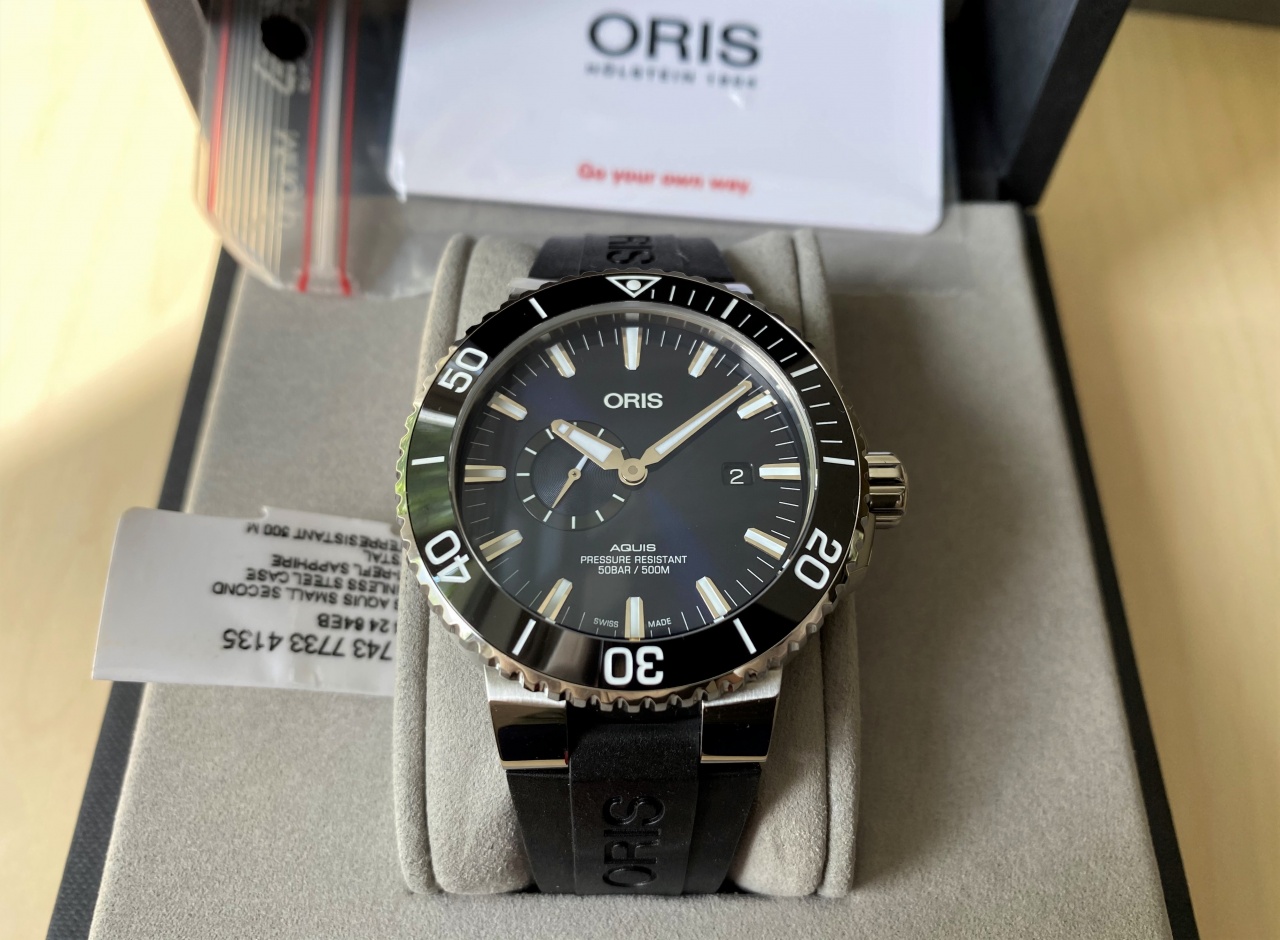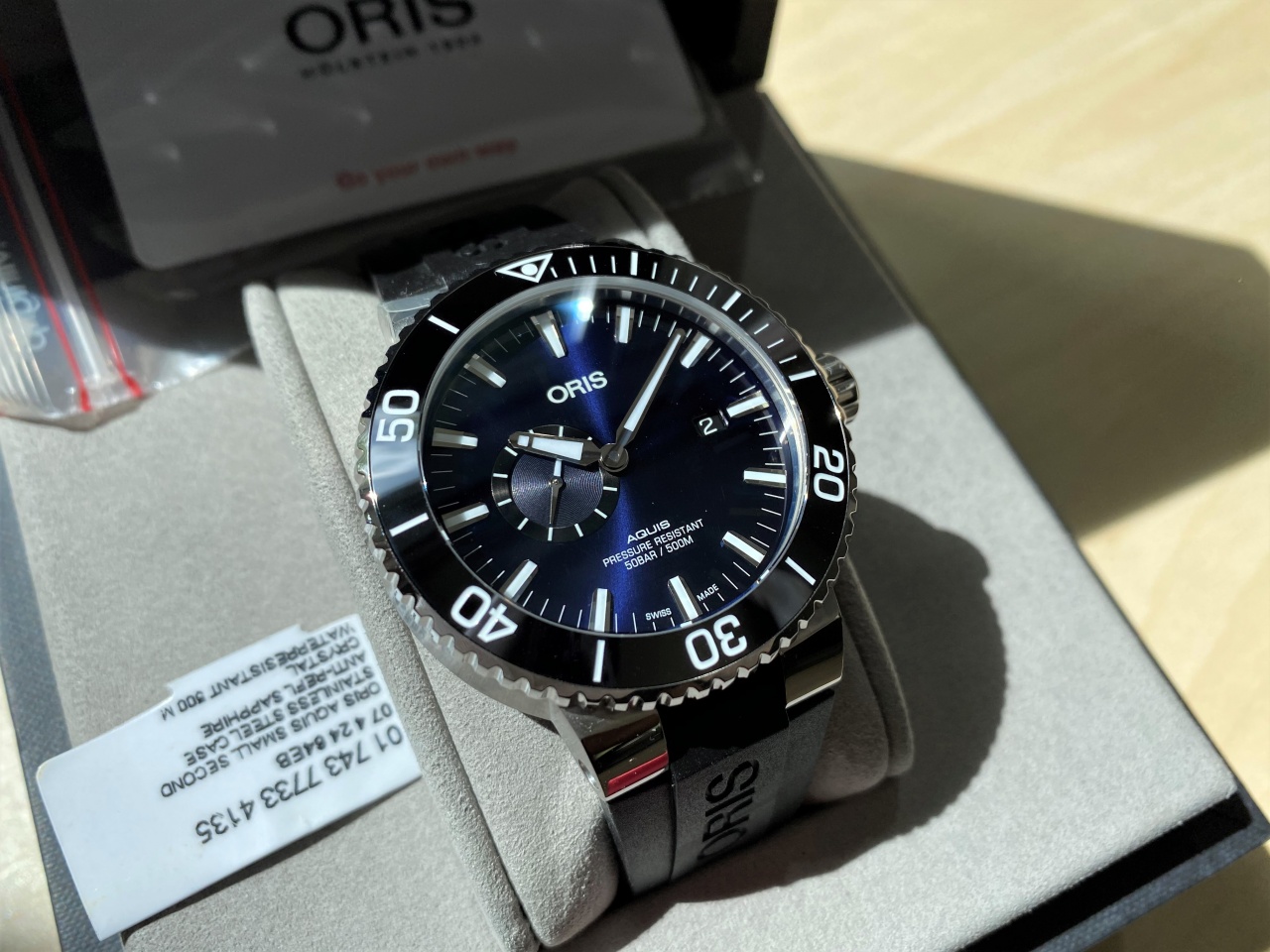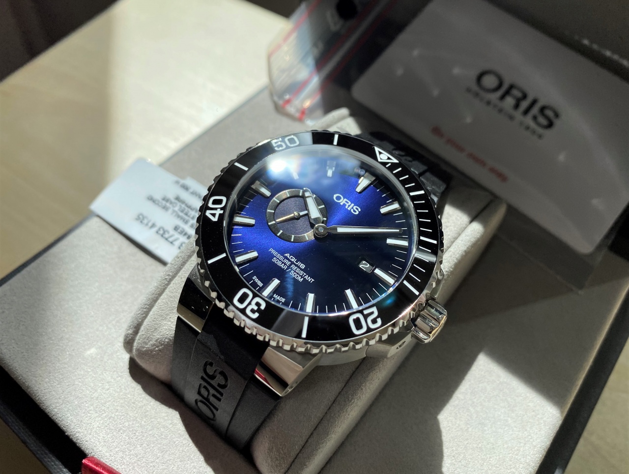 КУЛЬТОВЫЕ ДАЙВЕРЫ / ORIS AQUIS - SMALL SECOND / СИНИЙ ЦИФЕРБЛАТ!!! / ЧЕРНЫЙ КАУЧУК / 45.5ММ