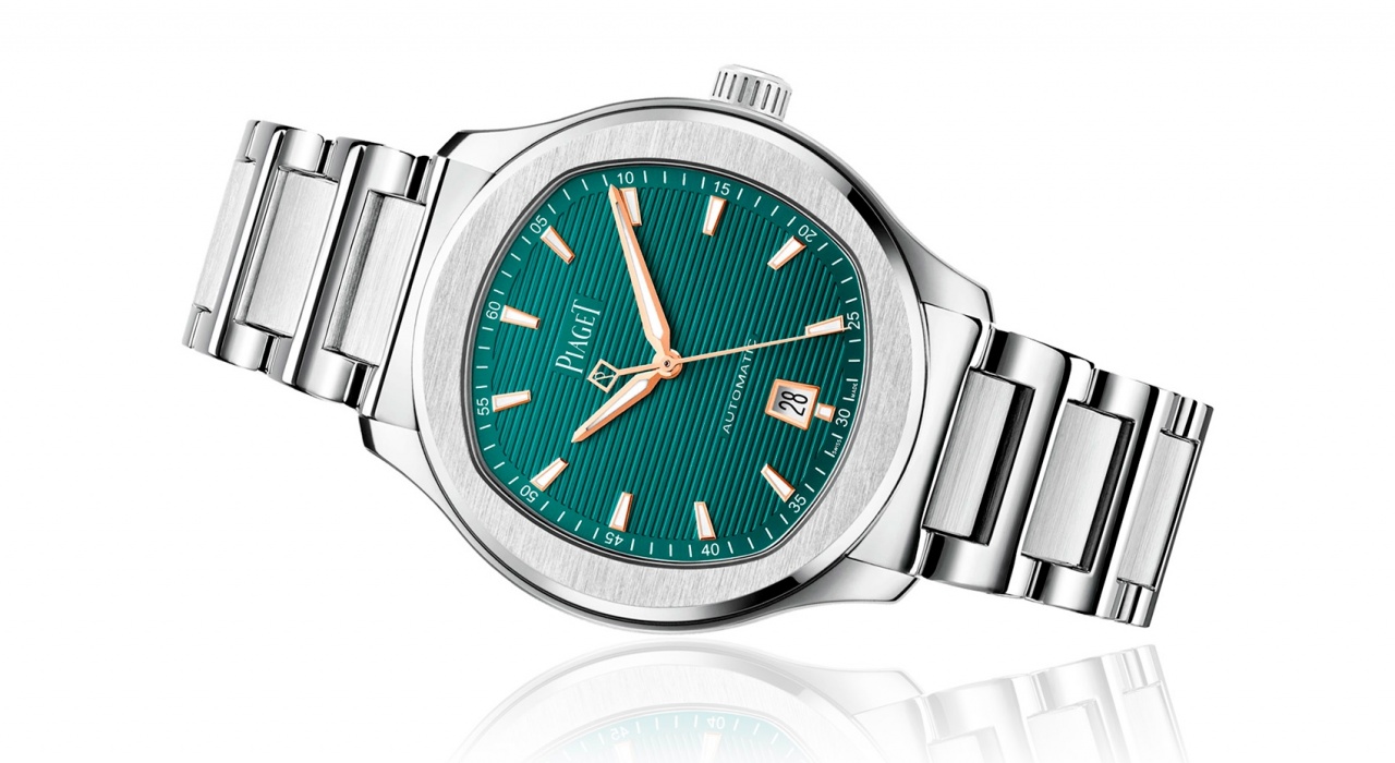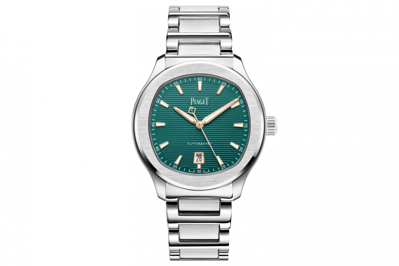 В 2020 году спортивный трехстрелочник Piaget получил зеленый циферблат с золотыми акцентами и стальной браслет, который заменил кожаный ремешок, представленный в прошлогодней версии модели. Компания Piaget пополнила коллекцию Polo S новой моделью в полностью стальном исполнении. В 2020 году спортивный трехстрелочник марки получил зеленый циферблат с PVD-покрытием, который оттеняют стрелки из розового золота и покрытые розовым золотом часовые индексы. Циферблат украшает характерный для этой коллекции паттерн в виде горизонтальных бороздок. Улавливая и отражая свет, они дают эффект, сравнимый с градиентным переходом цвета на всей поверхности циферблата. Золото на покрытых люминофором часовых индексах и стрелках поддерживает золотая рамка на указателе даты, расположенном у отметки «6 часов». Компактный корпус часов 42 х 9,4 мм имеет сложную форму. С виду перед нами круг, но внутренний контур безеля аккуратно вычерчивает восьмиугольник, придавая часам форму подушки. Сложную геометрию подчеркивает матово-полированная отделка корпуса. Контраст в отделке заметен и на интегрированном браслете, внешние звенья которого отполированы, тогда как центральные звенья – матовые (шлифовка с эффектом «браш»). Стальной браслет заменил использованный в прошлогодней версии модели кожаный ремешок, что только усилило спортивный характер часов. Заявленная водонепроницаемость модели – 100 метров.