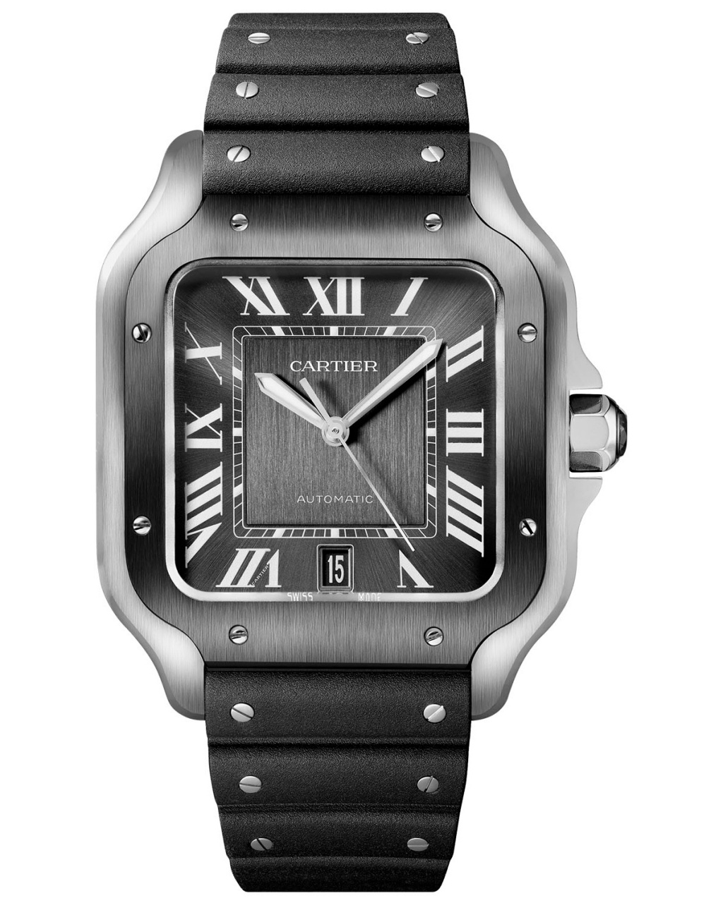 О черных доспехах двух новинок Watches&Wonders 2020, сменных ремешках и механизме, который называют современной рабочей лошадкой Cartier. Марка Cartier пополнила популярную часовую коллекцию Santos двумя моделями с функцией даты, представленными в стальных корпусах с темным ADLC-покрытием. Модели Santos de Cartier не стоит путать с линейкой ультратонких элегантных часов Santos-Dumont, вдохновленных исторической моделью 1904 года. Эти часы принадлежат обновленной в 2018 году часовой серии и являются более спортивными и современными часами, которые смело можно поставить на одну ступень с моделями класса люкс.