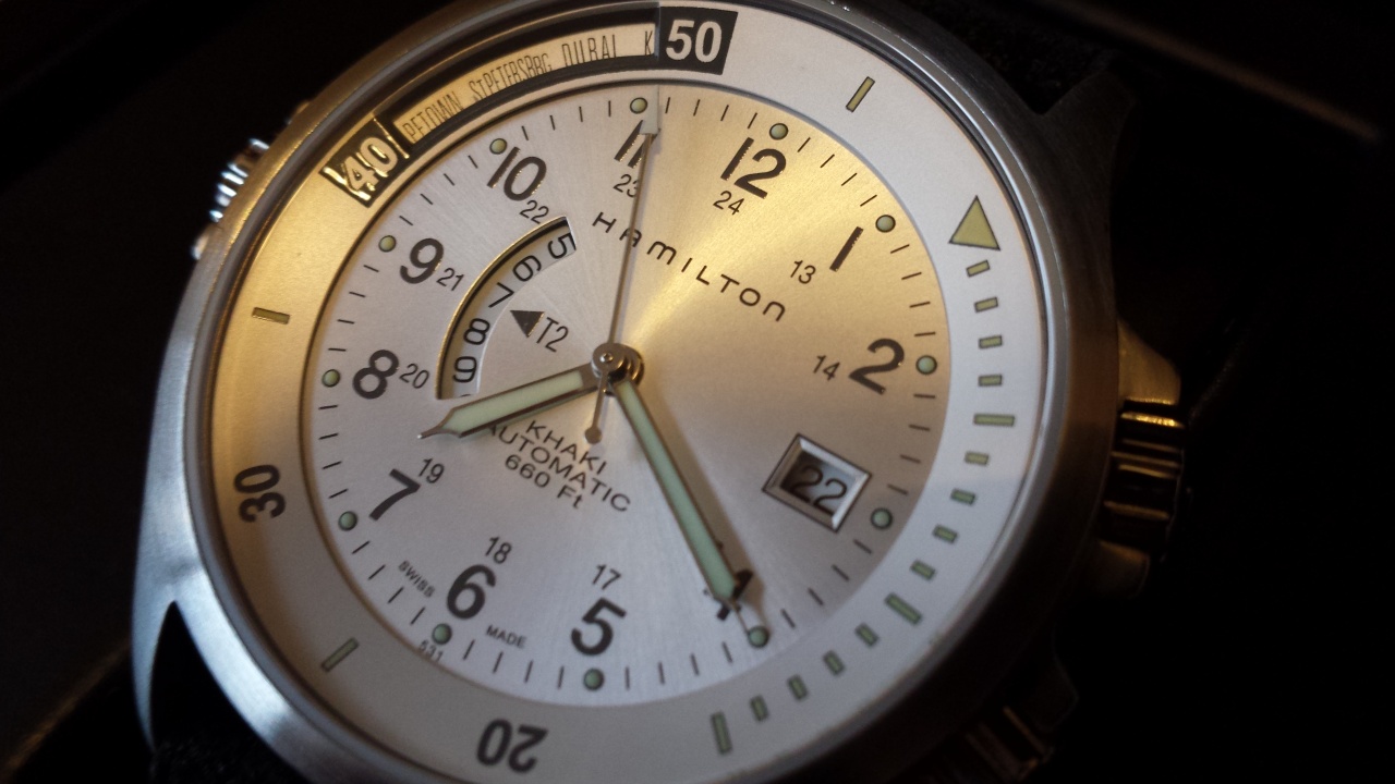 Дело в том, что Безель в этих часах фиксируется через 5 минут (24 щелчка) и это минутное отклонение не убирается. Что касается цифера, возможно вы и правы, но я так полагал, что это редкий случай брака, и так получалось, что все мои и жены часы, а это более 10 моделей начиная от Ориентов за 100$ с ровно нанесенным циферблатом. Одновременно столько косяков в одних часах это фиаско, по моему. Хотя по дизайну и идее часы очень нравятся. В общем кто собирается покупать Hamilton, нужно внимательнее смотреть на предмет дефектов и быть готовым к некоторой неаккуратности. |