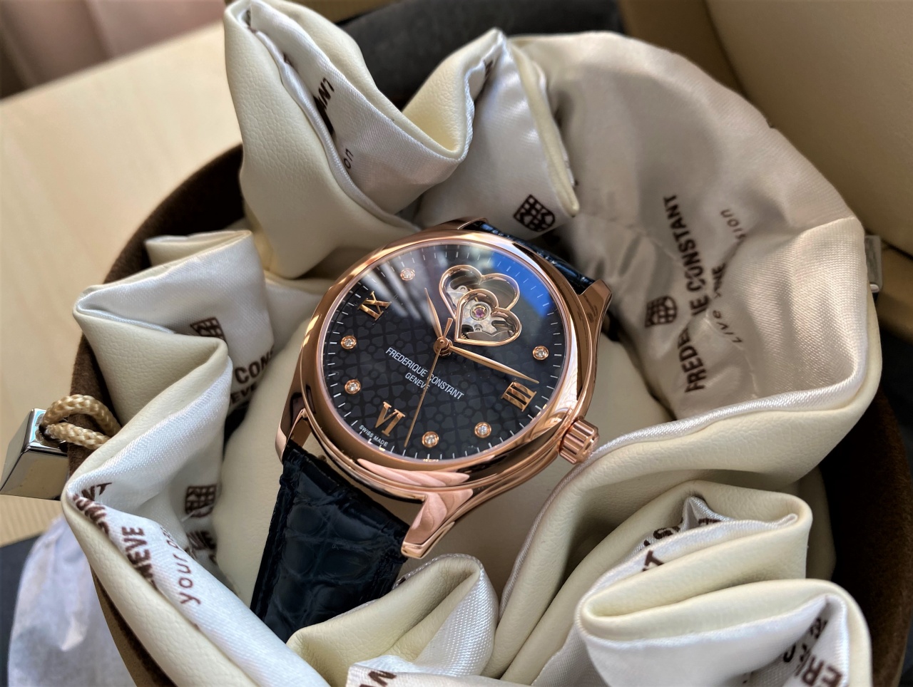 Пол: женские Год покупки: 2020 Новые часы, состояние: N (новые в пленках) http://forum.watch.ru/images/market-question.png Цена: 95 000 руб. (продажа) Коробка: есть Документы: есть https://i1.wp.com/watchranker.com/wp...02%2C198&ssl=1 https://timeshop.com.ua/images/detai...0NDHB3B4-1.jpg В продаже часы из одной из самых узнаваемых коллекций бренда Frederique Constant - Heartbeat (Сердцебиение). Открытый баланс хода в виде двух соединяющихся сердец, бриллианты, элегантный кожаный ремешок. Нереально красивые, равнодушным не оставляют. В живую смотрятся еще эффектнее нежели на фотографиях. Отлично подойдут для незабываемого подарка. Стоимость часов в официальных бутиках ~ 152.000 Руб. Цена часов на форуме - 95.000 Руб. Часы находятся в Москве, оперативный показ в любое время. Курьерская доставка в регионы, а также Белоруссию и Казахстан. Все мои объявления, а так же отзывы обо мне можно найти в моем профиле. По всем вопросам и предложениям пишите в любое время - договоримся! Механизм: Механический с автоподзаводом Корпус: Нержавеющая сталь + позолота Стекло: Сапфировое Браслет: Кожа Водостойкость: 50 м (WR 50) Размер/диаметр: 36 мм Оформление: Выпуклое стекло, корпус - розовая позолота, частичный скелетон - открытый баланс хода, циферблат декорирован и 6 бриллиантами, прозрачная задняя крышка, ремень из кожи аллигатора. Запас хода на 38 часов Выпуск: 2019 Калибр: FC-310 Производство: Швейцария Фото часов: Вложение 2979601Вложение 2979602Вложение 2979603Вложение 2979604 Вложение 2979605Вложение 2979606Вложение 2979607Вложение 2979608 |